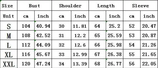 Примечание:Из-за различных пропорций тела, вышеуказанные размеры представлены только для справки;