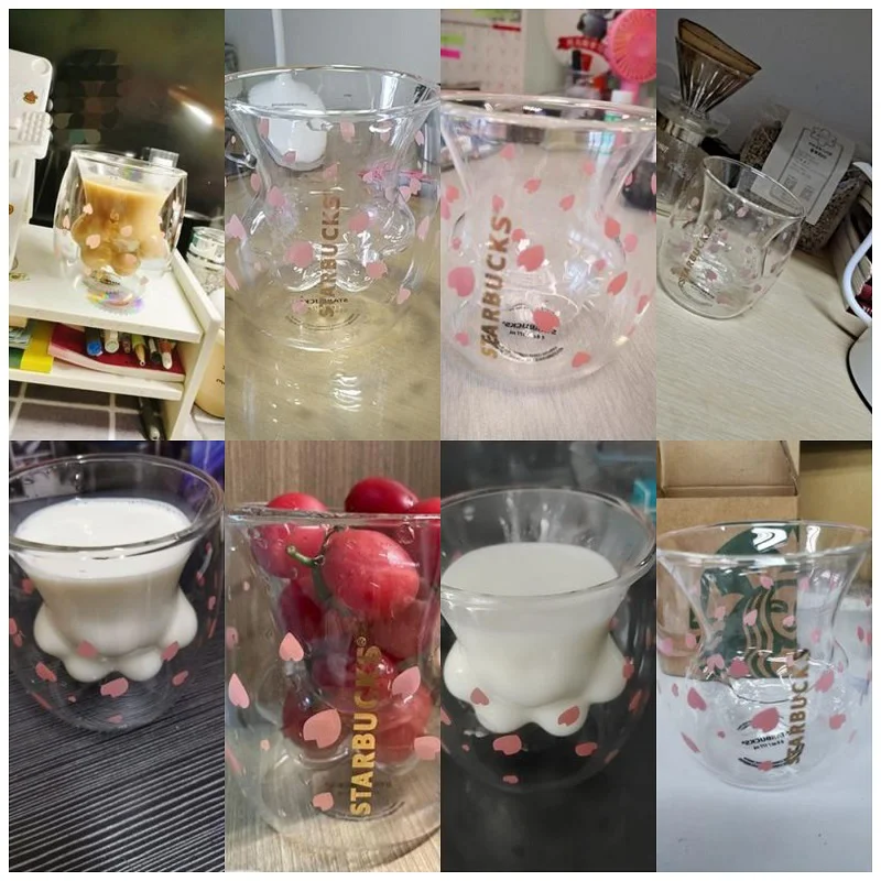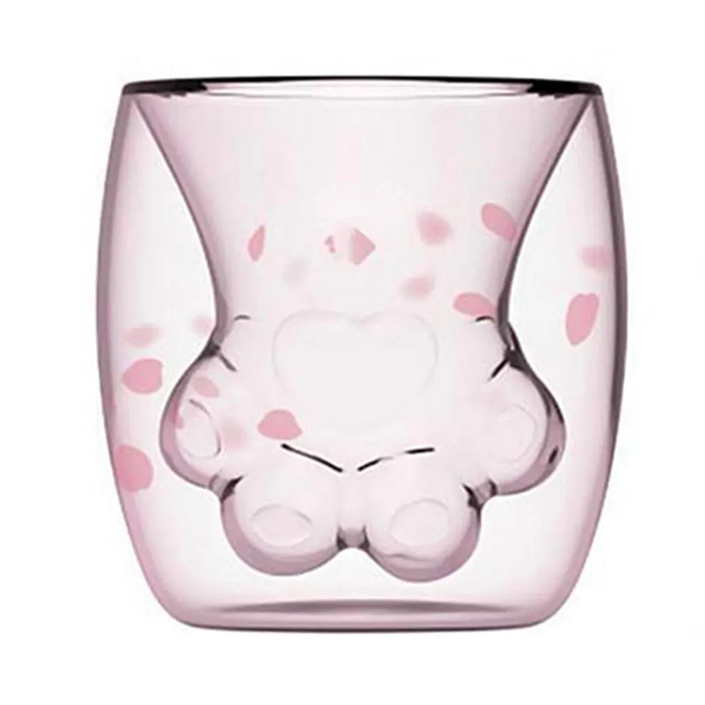 Отзывы о Креативная Милая прозрачная стеклянная кружка в виде кошачьей лапы двухслойная