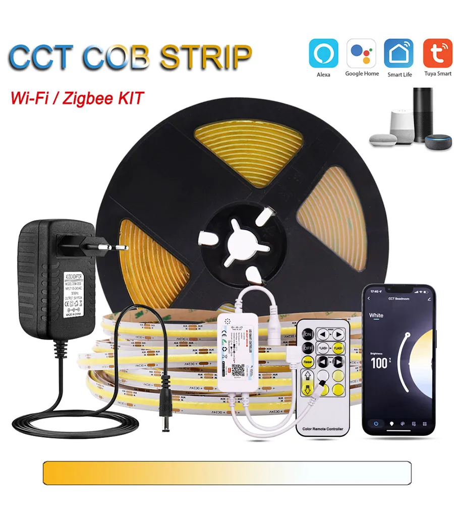 Отзывы о Tuya Alexa CCT Bicolor COB Светодиодная лента с голосовым управлением гибкая регулируемая