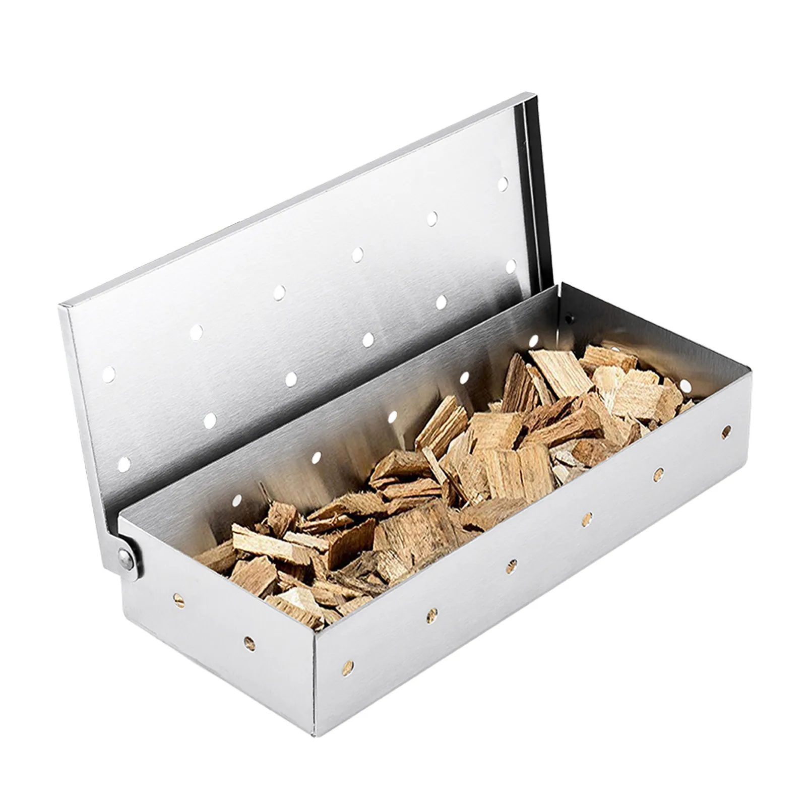 5. Дизайн с откидной крышкой, наш гриль курильщик коробка удобна для вас, чтобы добавить больше щепы или любые специи в или вынуть их. Это также экономия труда для вас.