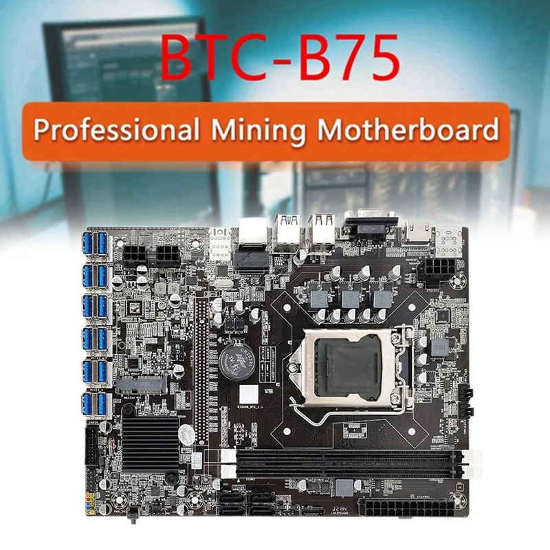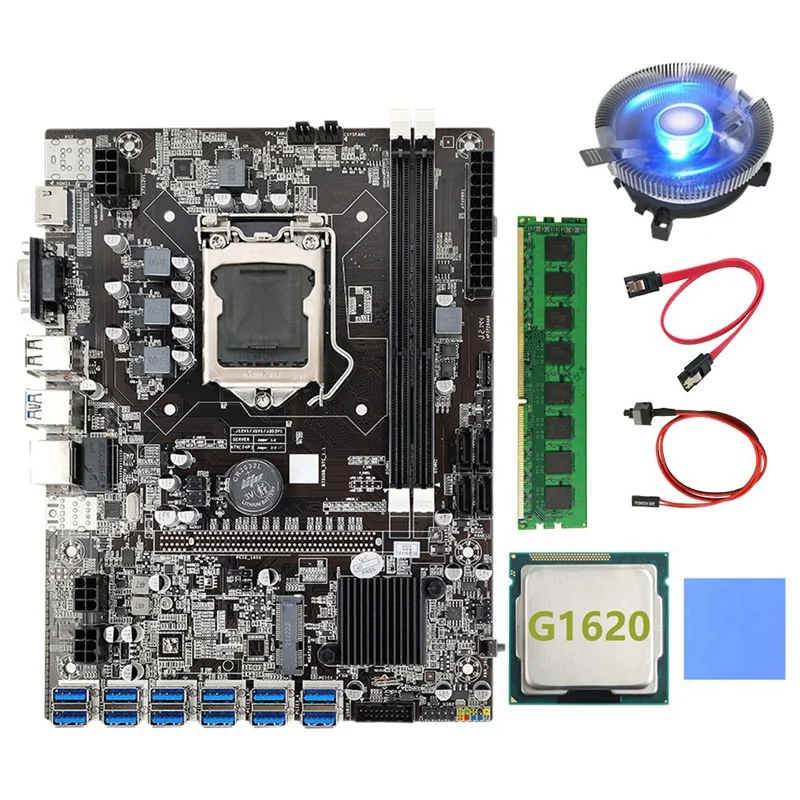 Отзывы о Материнская плата B75 BTC для майнинга 12 PCIE к USB LGA1155 DDR3 4 Гб 1600 МГц ОЗУ + ЦП G1620 кабель