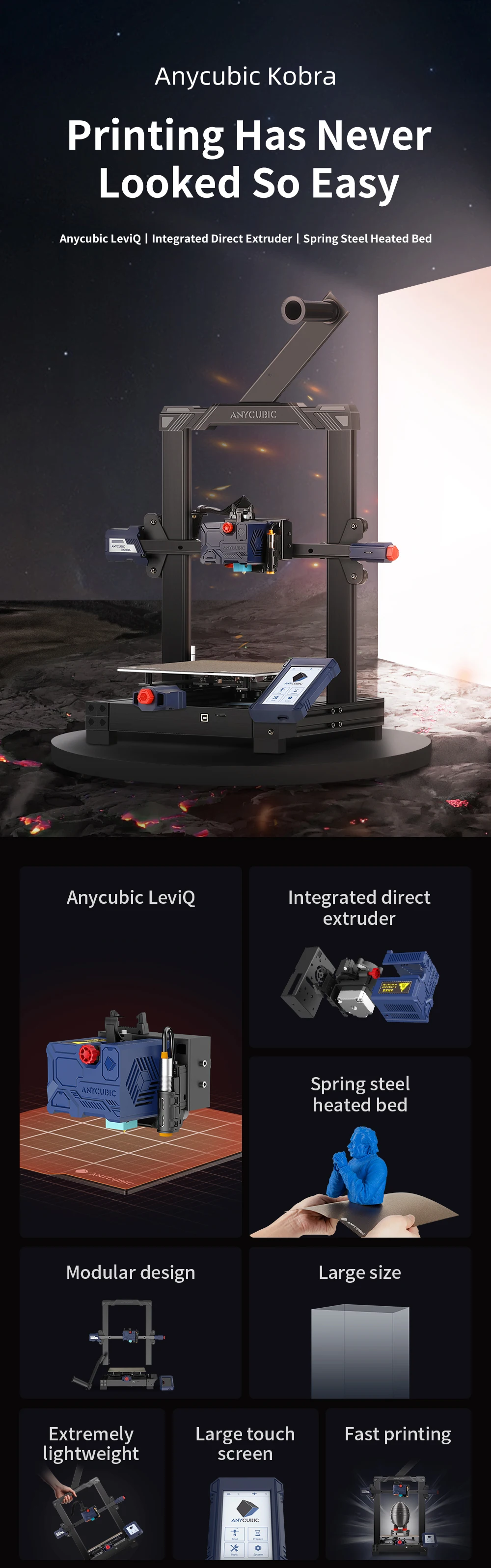 Anycubic LeviQ/интегрированный прямой экструдер/пружинная стальная кровать с подогревом