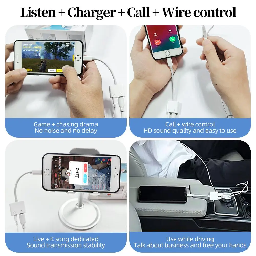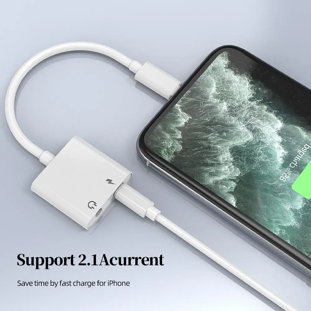 Отзывы о Аудиоадаптер 2 в 1 зарядный кабель для наушников iPhone 11 12 Pro Max xXS Aux-разъем гарнитура