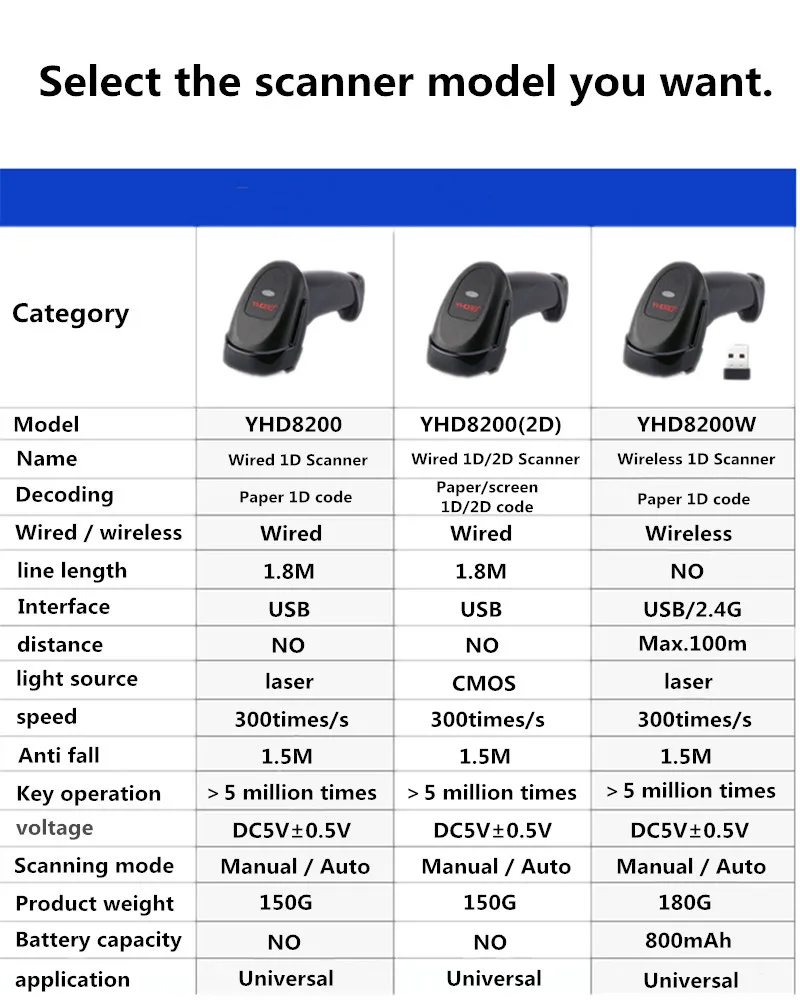 YHD8200 портативный лазерный сканер штрих-кода ручной автоматический непрерывный 1D/2D сканирующий пистолет 300 раз/с Play and Plug