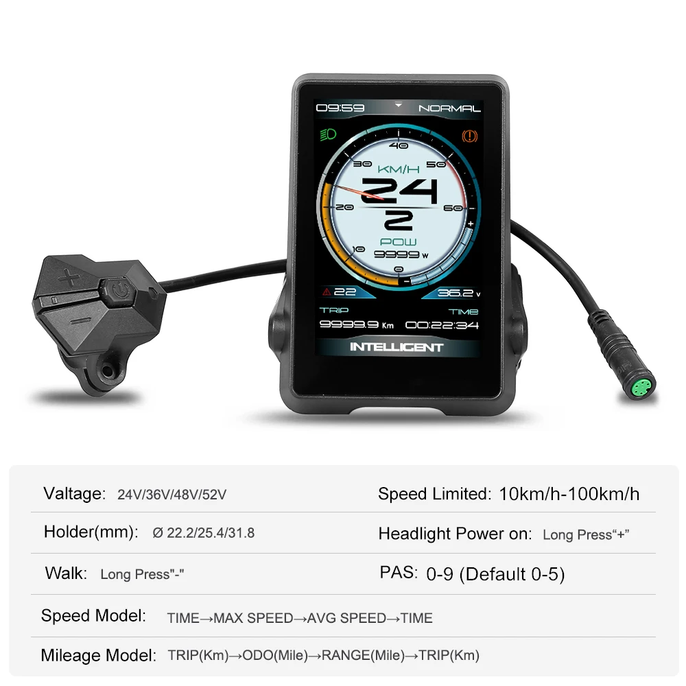 Примечание: 1. Дисплей подходит только для мотора Bafang, который имеет протокол UART.2. Не подключайте и не отключайте этот дисплей при включении питания.3. Избегайте столкновений.4. Защита мембраны дисплея для обеспечения водонепроницаемости.5. Не пытайтесь сбросить параметры, если дисплей не работает. Установка: Установите дисплей и кнопку управления на руле и отрегулируйте его расположение. Подключите его к контроллеру с выключением питания.