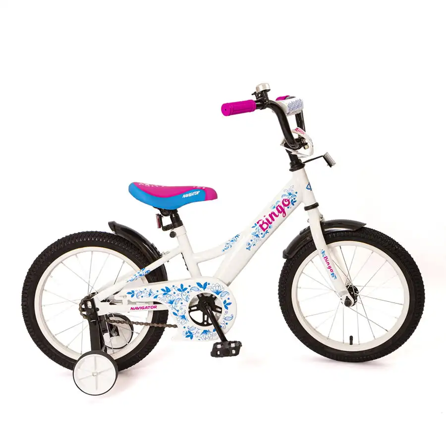 Двухколесный детский велосипед Navigator BINGO. К модели прилагаются боковые страховочные колесики, позволяющие ребенку пользоваться двухколесным транспортом до приобретения навыка удерживания равновесия на нем. Общие характеристики. Бренд: NAVIGATOR. Тип велосипеда: Детский. Подтип велосипеда: Хардтейл. Модельный год: 2022. Материал рамы: Сталь. Класс велосипеда: Городской. Тип рамы: Подростковый. Тип тормозов: Ножной тормоз. Велосипед для: Универсальный.характеристики