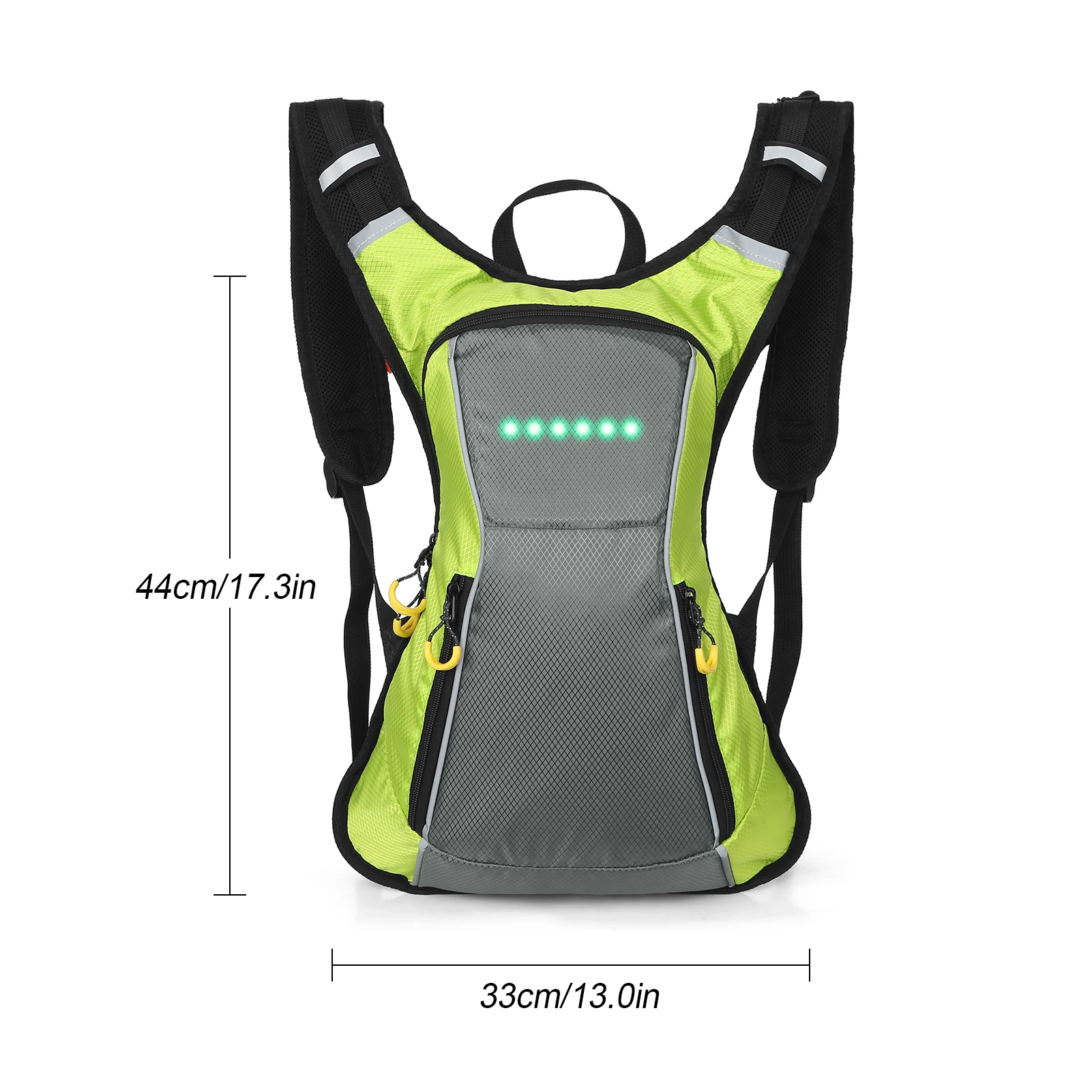 Этот водонепроницаемый рюкзак оснащен светоотражающими полосками и светодиодный подсветкой, которые будут отвечать на сигнал, полученный от пульта дистанционного управления, напоминая пассажирам и водителям держать расстояние от вас. Встроенная перезаряжаемая батарея емкостью 500 мАч. Он может работать 20 часов непрерывной работы после 2 часов полной зарядки. Абсолютно идеальное дополнение для ночной езды на велосипеде.