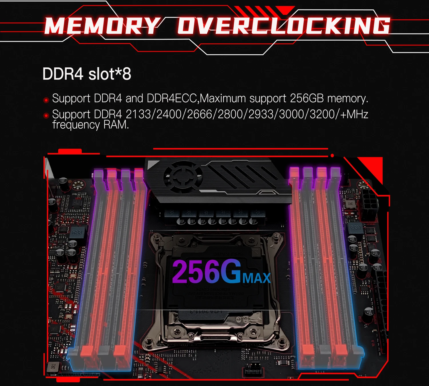 Максимальная емкость 256G памяти (Серверная память не может быть совместима с настольной памятью, есть проблемы с совместимостью.)