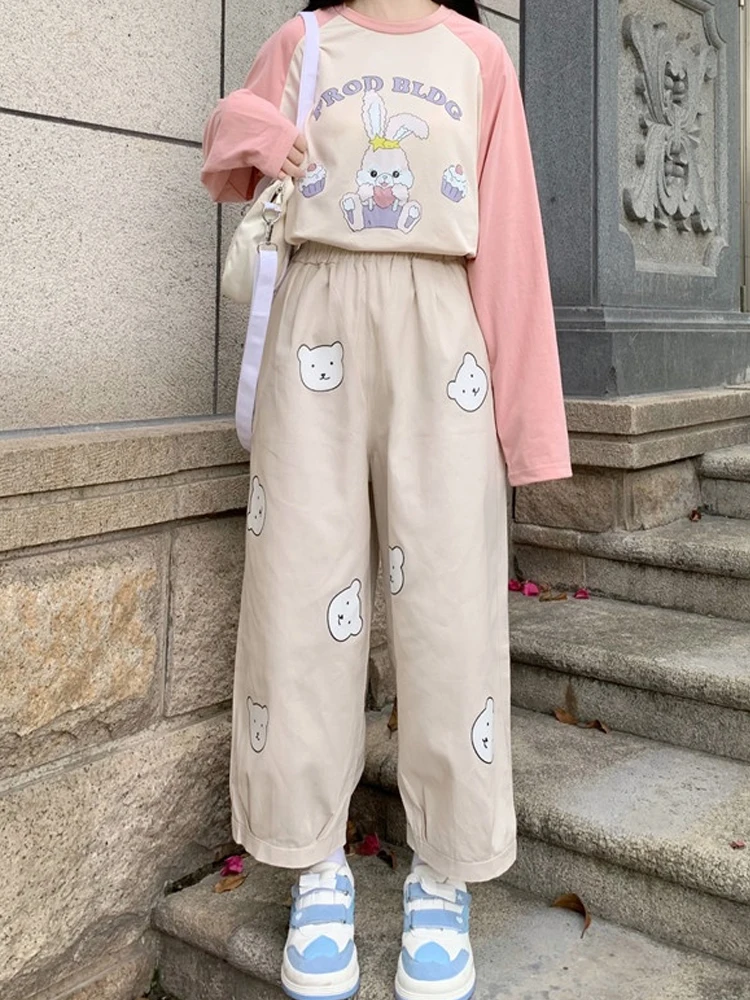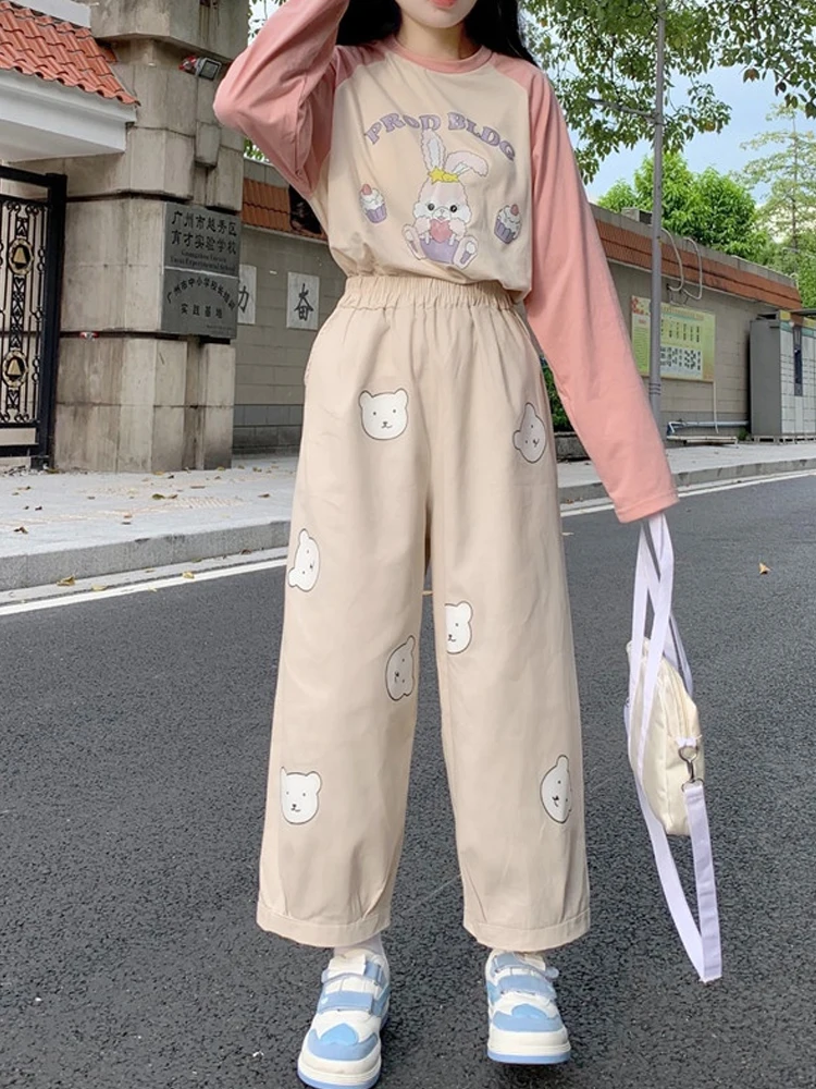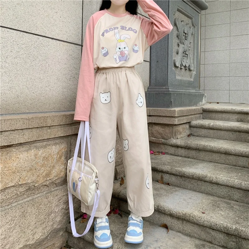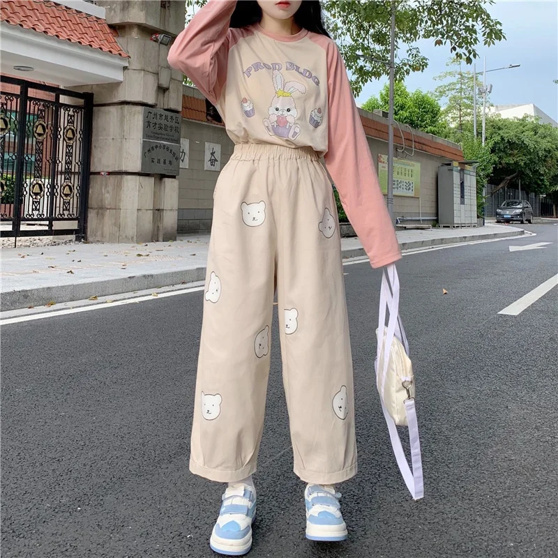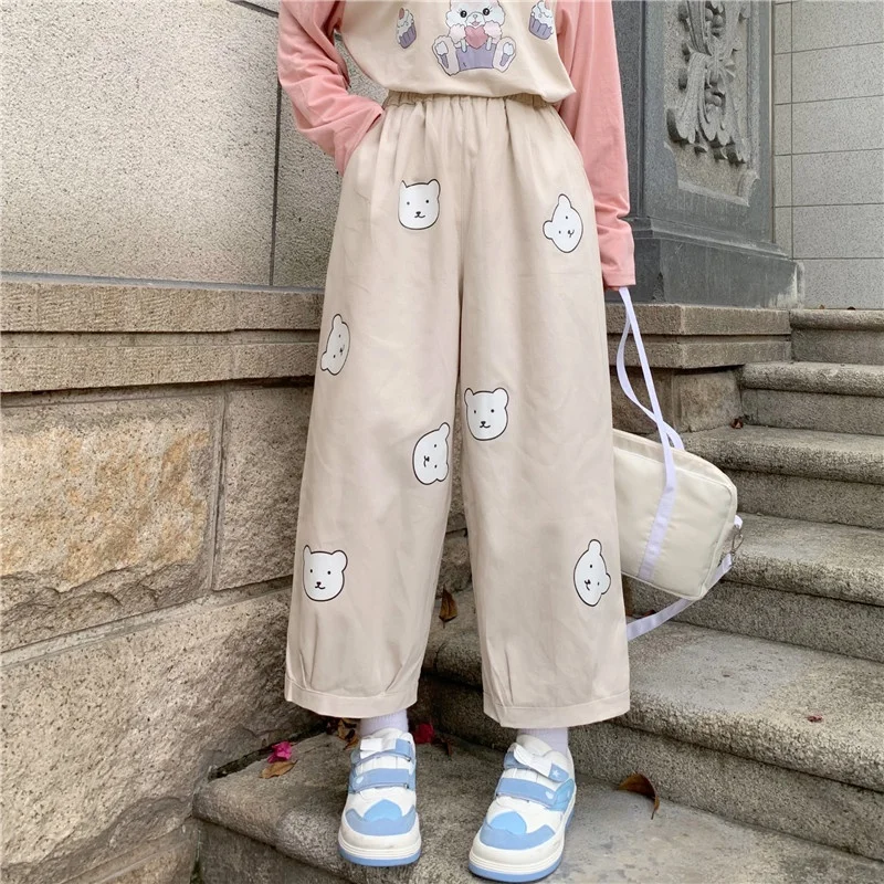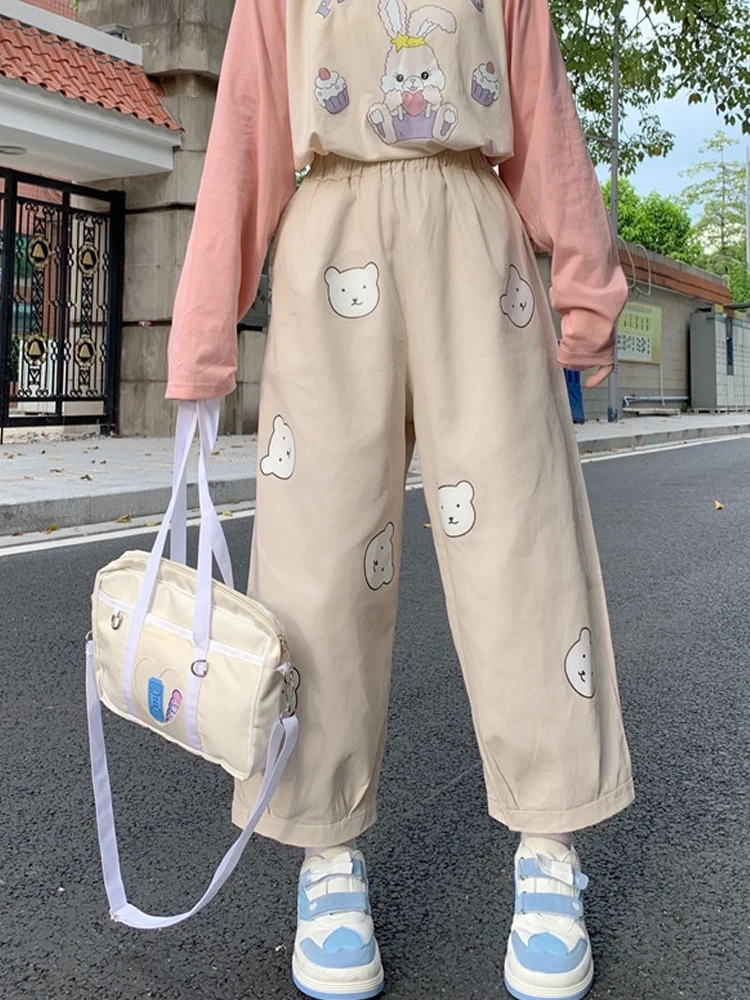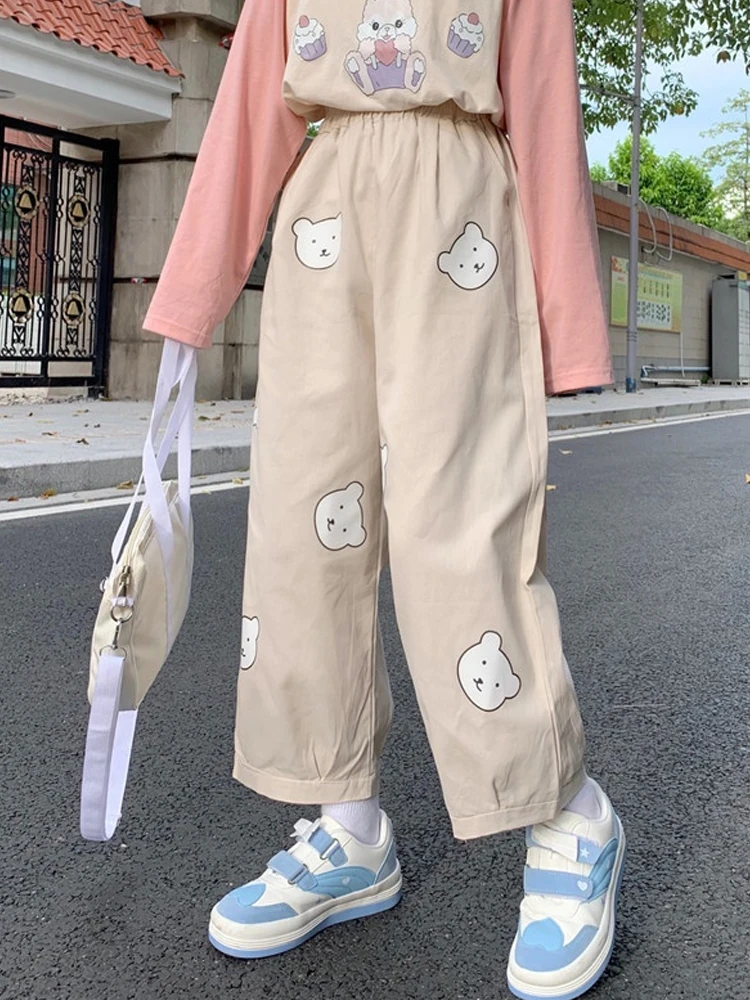 Отзывы о KIMOKOKM Kawaii/мягкие женские брюки с милым принтом медведя для девочек Свободные