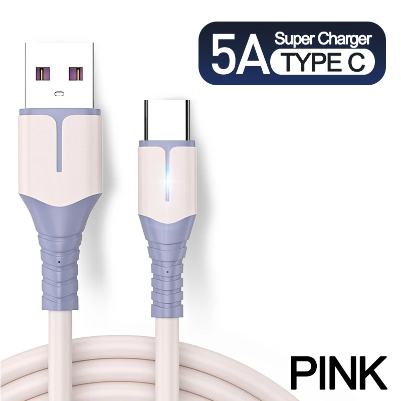 Кабель типа C 5А жидкий силикон для Huawei Mate 40 P40 Pro для Samsung S10 S20 Быстрая зарядка USB-C кабель для передачи данных USB Type-C