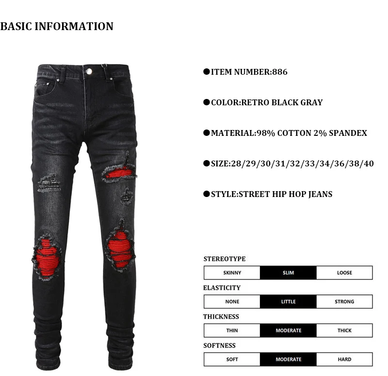 Отзывы о Джинсы мужские в стиле ретро рваные Брюки Slim Fit эластичные брендовые штаны