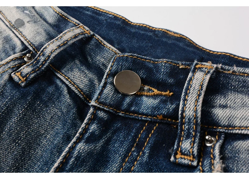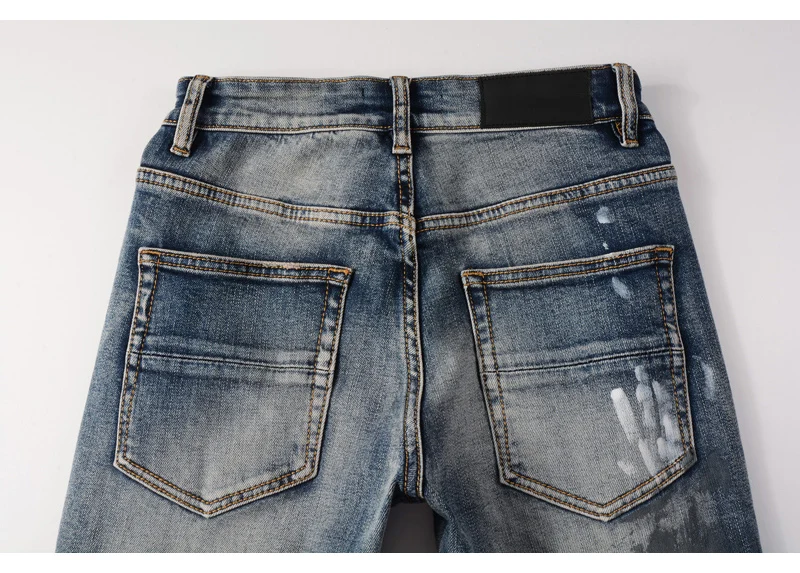 Отзывы о Модные мужские джинсы High Street в стиле ретро синие эластичные облегающие потертые