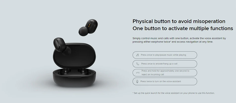 Просто Управляйте музыкой и звонками с помощью одной кнопки, активируйте голосовой помощник, дважды нажав Наушники * и получите доступ к навигации в любое время.
