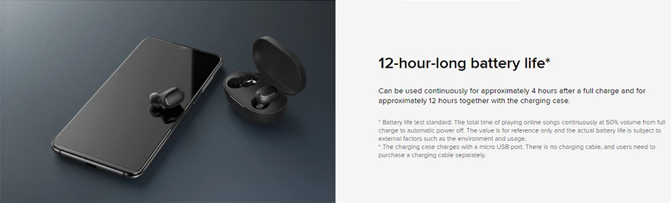* Стандарт тестирования срока службы батареи: общее время воспроизведения онлайн-песен непрерывно на 50% громкости от полной зарядки до автоматического отключения питания. Значение только для справки, и фактический срок службы батареи зависит от внешних факторов, таких как Окружающая среда и использование.