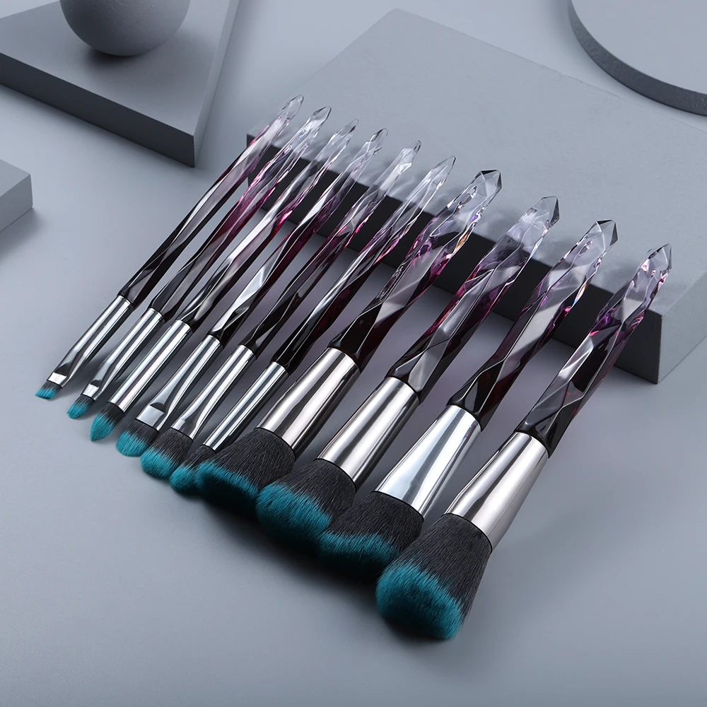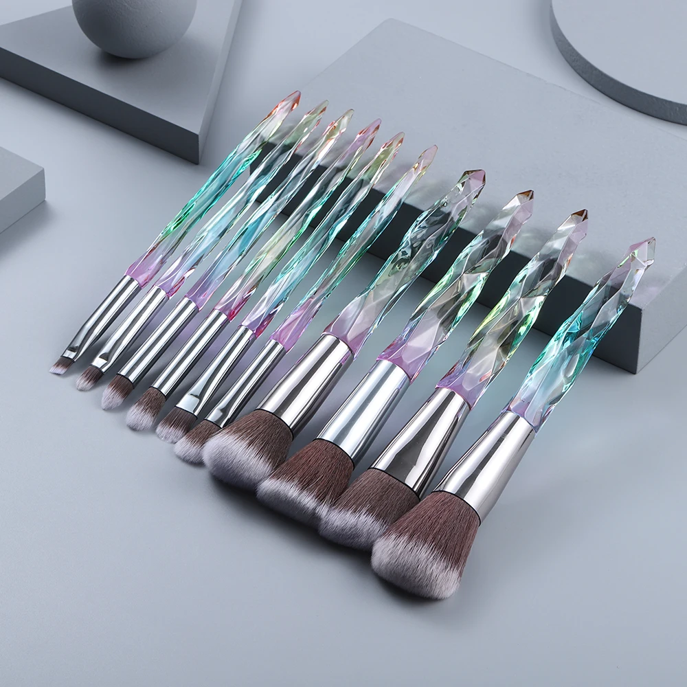 KOSMETYKI 10 шт Кристальные кисти для макияжа Набор свободная Пудра Румяна Основа для контурирования теней для век консилер Красота Инструменты полный набор
