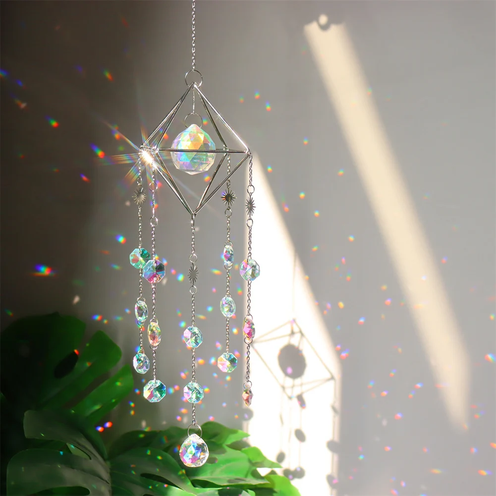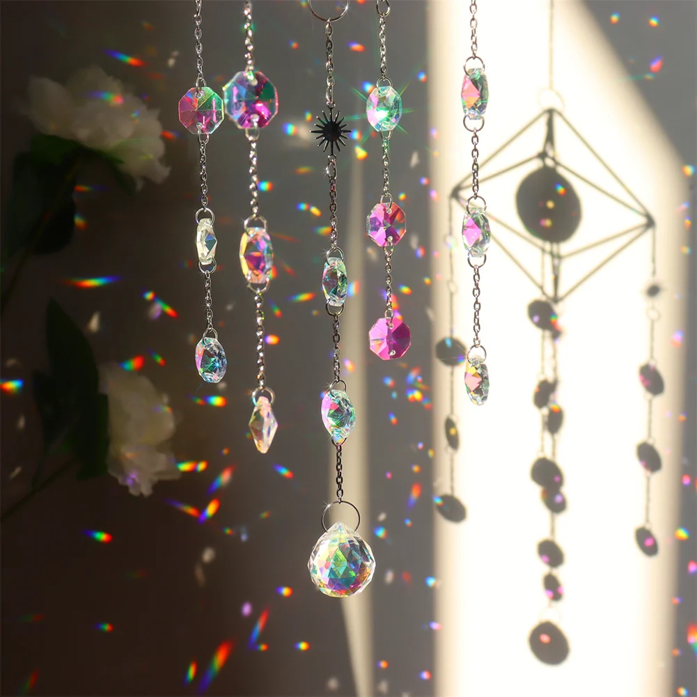 Хрустальные колокольчики, красочные металлические подвесные призмы, светильник, Ловец, орнамент, оконная занавеска, Ювелирная подвеска, люстра для дома, сада, автомобиля, комнаты, Декор, подарки