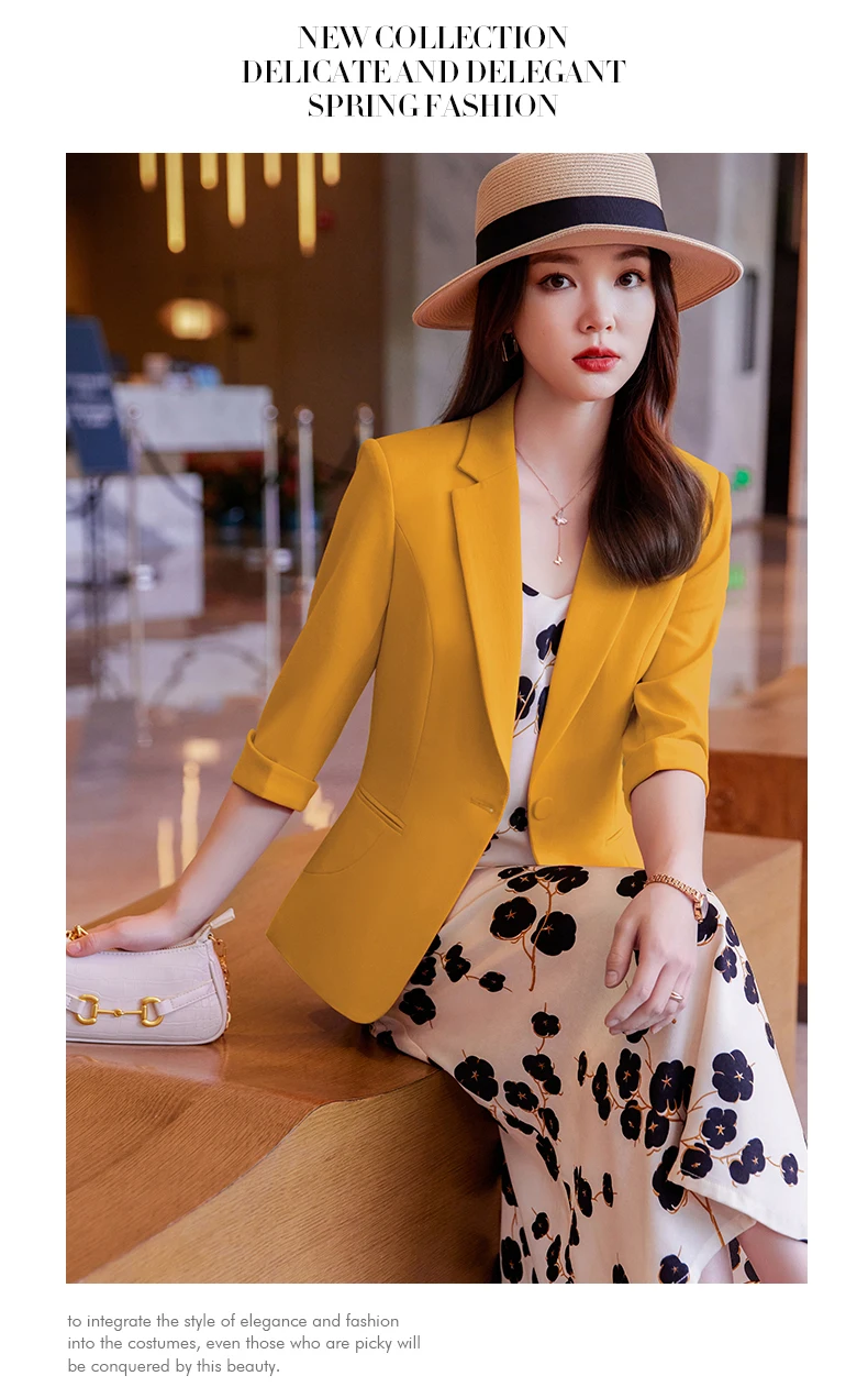 Отзывы о Женский Повседневный Блейзер желтый пиджак с полурукавами приталенный деловой