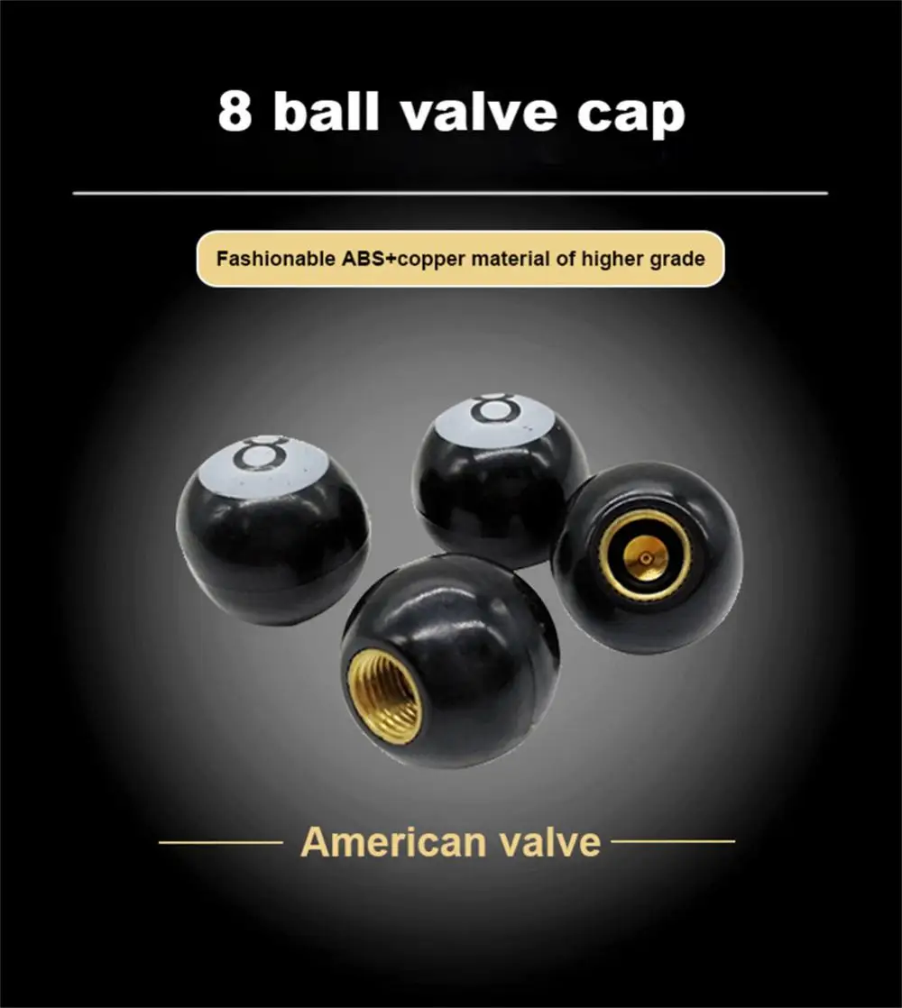 4 шт. колпачки на стержень клапана шины, универсальные крышки для автомобилей, горных велосипедов и велосипедов, грузовиков, мотоциклов Бильярд черный 8 Sty