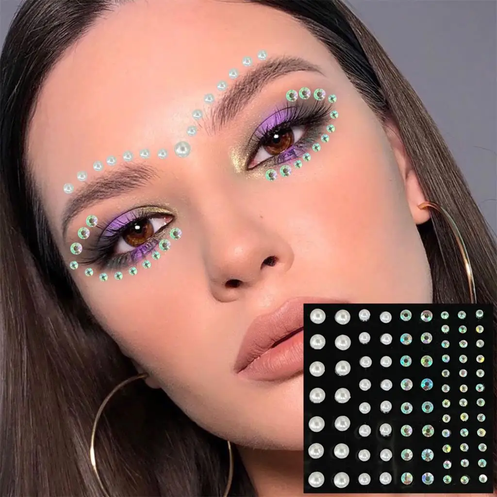 Красочные украшения для лица временные татуировки глаз бровей Бинди точки стикер для драгоценных камней блестящие стразы жемчуг Макияж Ювелирные изделия Хэллоуин рейв