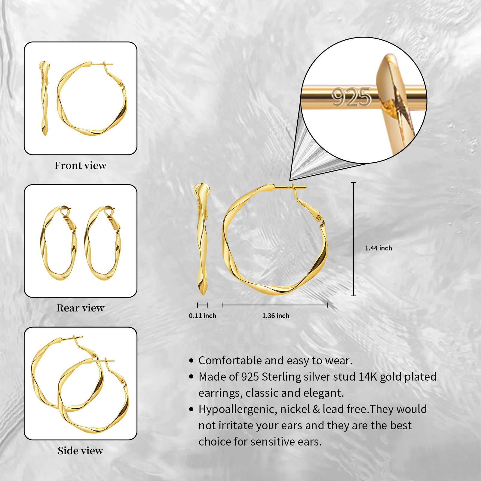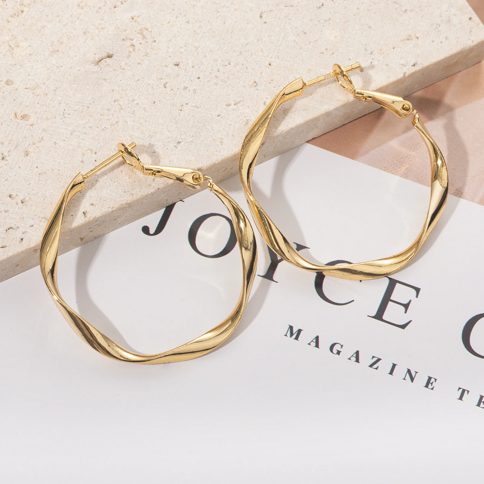 Простые латунные позолоченные большие серьги-кольца с 925 пробы, серебряные серьги-шпильки в винтажном стиле, вечерние ювелирные изделия, подарок для женщин