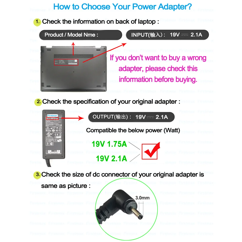 Так как многие части адаптера No. Соответствуют нескольким размерам разъема постоянного тока, пожалуйста, не выбирайте адаптер в соответствии с частью адаптера No.Если вы не уверены, работает ли этот адаптер для вашего ноутбука, пожалуйста, оставьте сообщение о заказе вашей модели ноутбука или спросите нас перед заказом, спасибо!