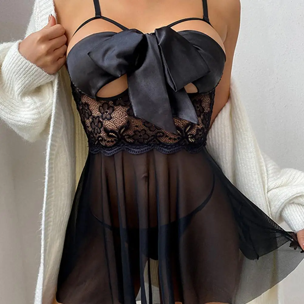 Красивое сексуальное платье, трусики с открытой спиной, очаровательный дизайн на бретельках, сексуальное платье, стринги, комплект, газовое платье, стринги, 2 шт./компл.Характеристики: