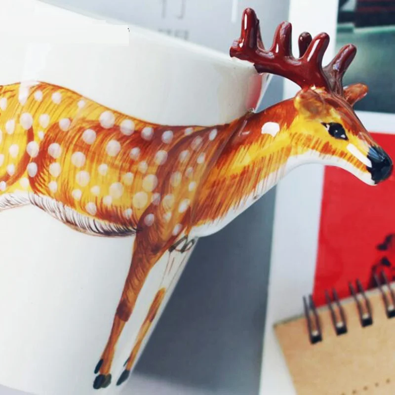 400 мл 3D креативная кружка с изображением животных, рисованная вручную олень, жираф, скот, обезьяна, собака, лошадь, чашка, керамические молочные кофейные кружки, рождественский подарокХарактеристика: