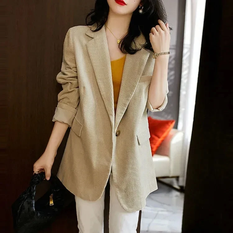 Отзывы о Новый весенне-осенний длинный вельветовый костюм куртка Женский Свободный