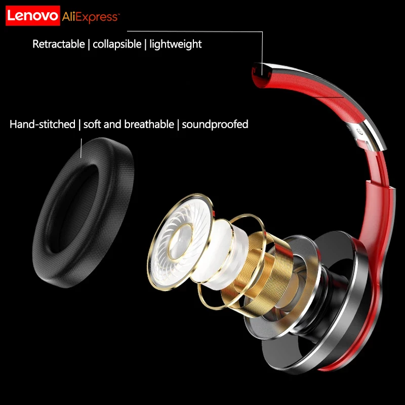 Lenovo HD200 TH10 TH40 Bluetooth наушники складные компьютерные беспроводные наушники шумоподавление микрофон HIFI стерео игровая гарнитура