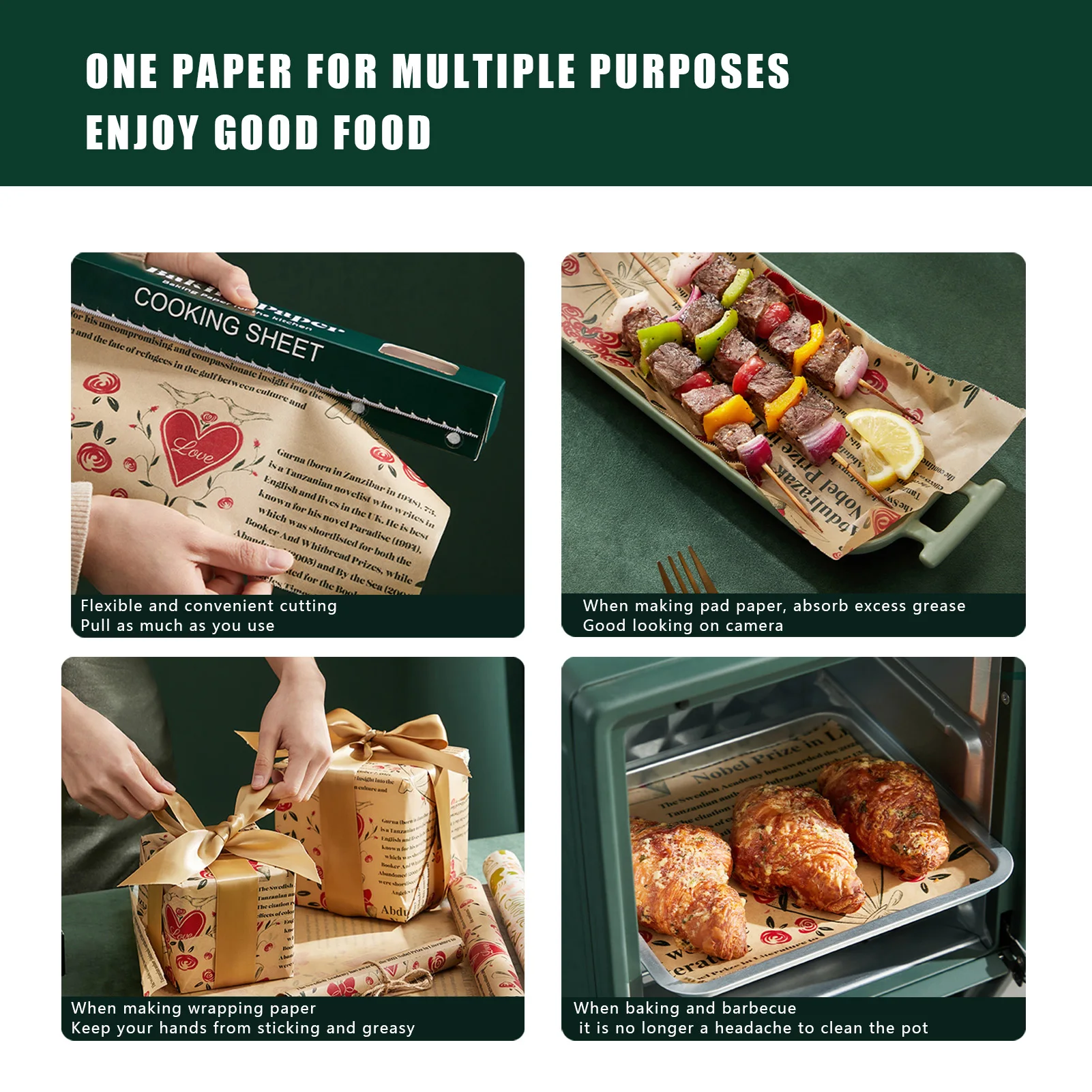 Описание товара:Одна бумага многоцелевой, наслаждайтесь светильник еды, выпечки барбекю, больше не головная боль горшки и сковородки проблемы очистки; Сделать коврик бумаги, поглощать излишки смазки бумаги, фотографический позирует выглядит хорошо; сделайте упаковочную бумагу, чтобы руки не прилипали жирно. Подробная информация о продукте, натуральная древесная масса материала, использование более безопасного, с зубчатым дизайном, легко аккуратно разрезается, отдельная цветная упаковка, красивая и эффективно Пылезащитная. Милый простой и ретро светильник, роскошный, два цвета цветов, для еды и стола, плюс очки, подарят вам хорошее настроение для ужина.