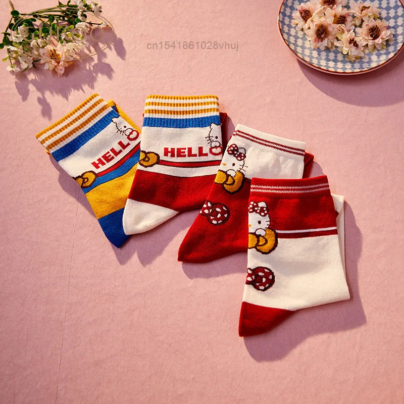 Отзывы о Женские модные носки Sanrio Hello Kitty средней длины Спортивные Повседневные для