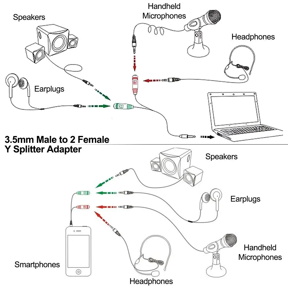 # Высокое качество: сделано из меди, золота, без потерь звука, взаимных конверторов. Два женский ТРС 3,5 мм вилки combo в одну TRRS мужской 3,5 мм Сделано в Китае, один аудио порт и один порт микрофона к 3,5 мм разъем для наушников/микрофона комбинированный порт [CTIA Strandard].