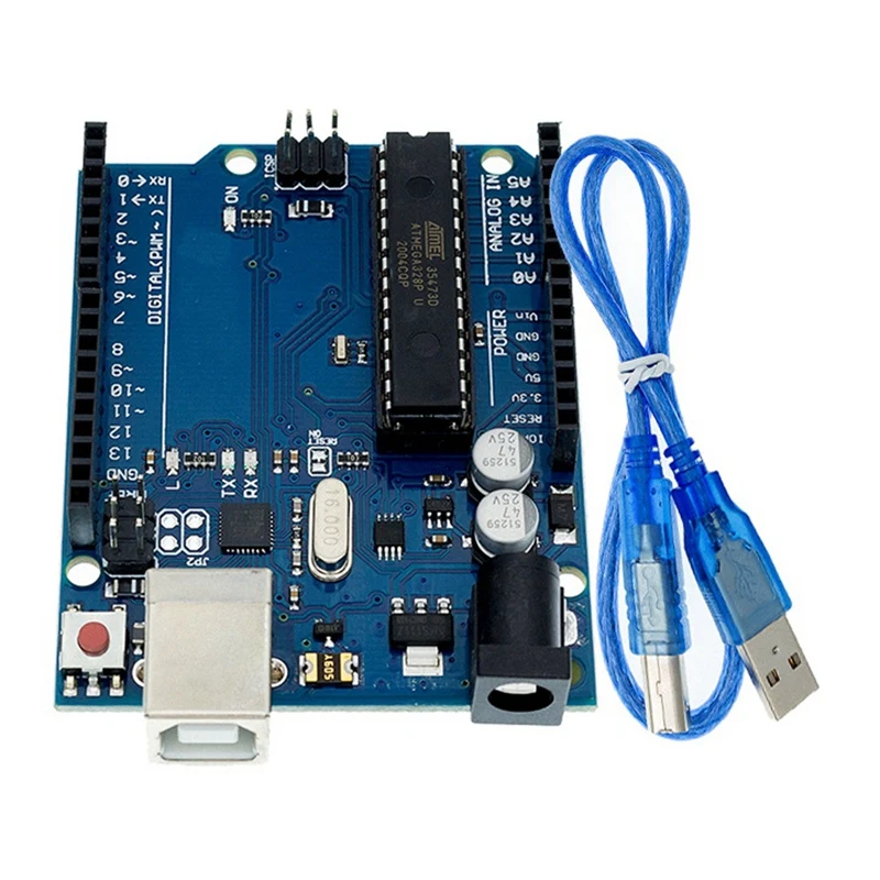 Отзывы о Плата контроллера микроконтроллера для UNO R3 с синим USB-кабелем Arduino Uno Project Rohs -