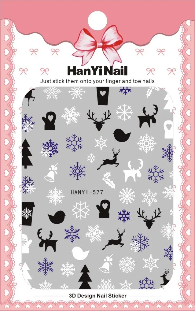Отзывы о 3шт./упак. HANYI 554-577 Рождественская Снежинка Санта-Клаус наклейка для ногтей 3D