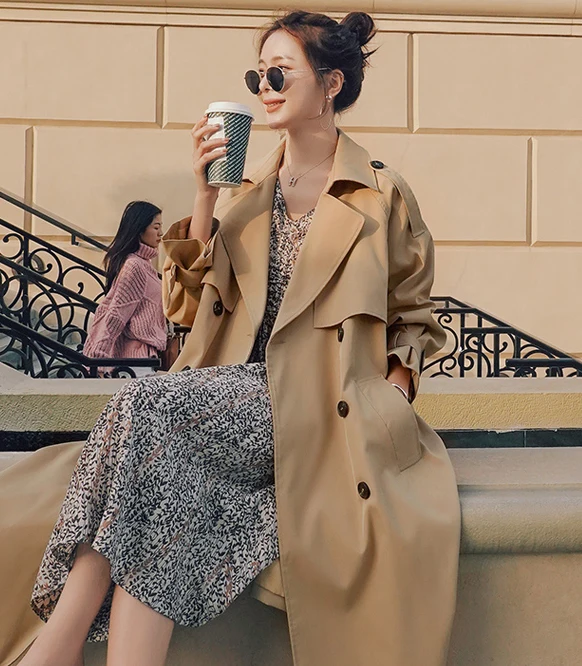 Отзывы о Осенний женский длинный тренчкот модная Корейская уличная одежда дождевик с