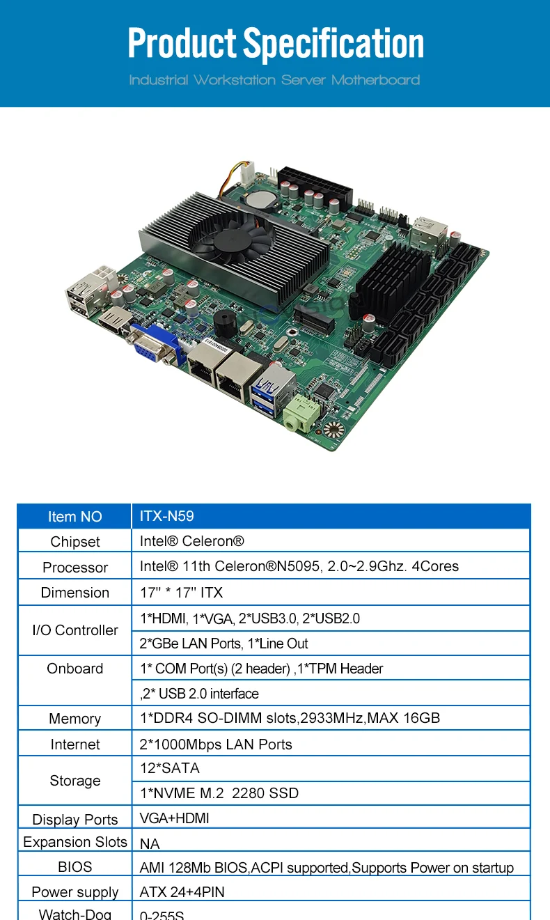 Мини ITX NAS материнская плата с 11th 4 ядрами N5095 процессор 12SATA3.0 NAS Серверная плата