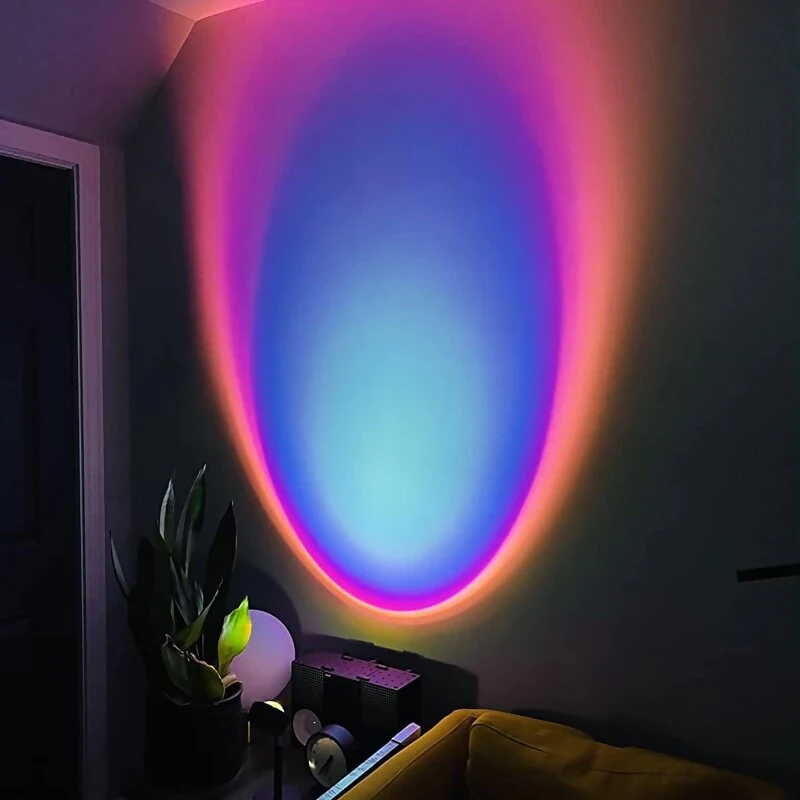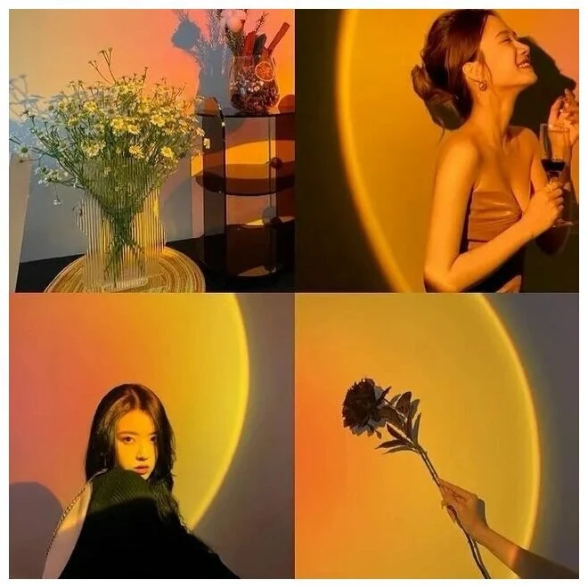 - Это уникальный цветной светильник-проектор, который поможет расширить ощущение пространства, создать загадочную, романтичную и уютную атмосферу и сделать потрясающие фото! Мягко освещает окружающую среду и создает теплую атмосферу заката.