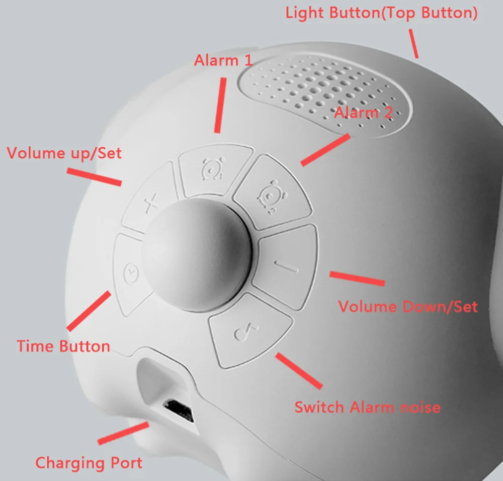 4. При звонке нажмите верхнюю кнопку, чтобы выключить будильник в течение дня. 5. Это не просто часы, а ночной Светильник с функцией голосового управления.