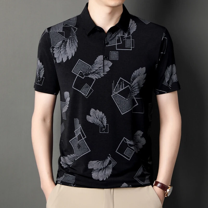Отзывы о Рубашка-поло мужская с коротким рукавом хлопок винтажная модная блуза принтом в