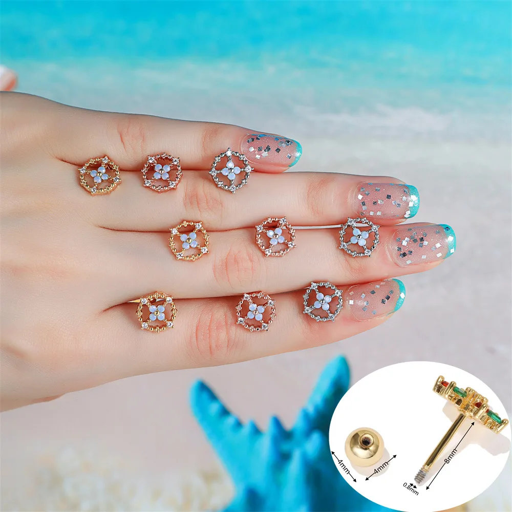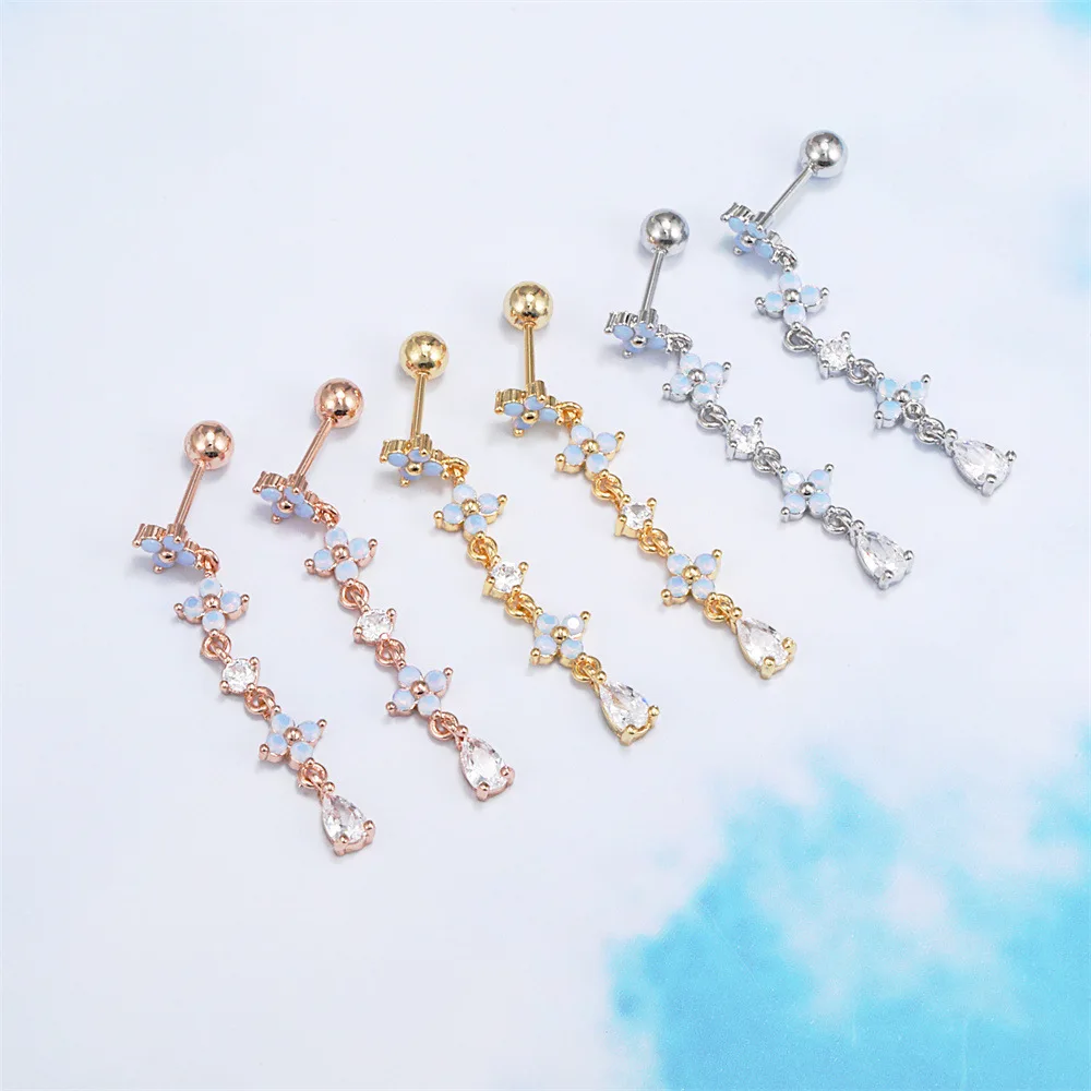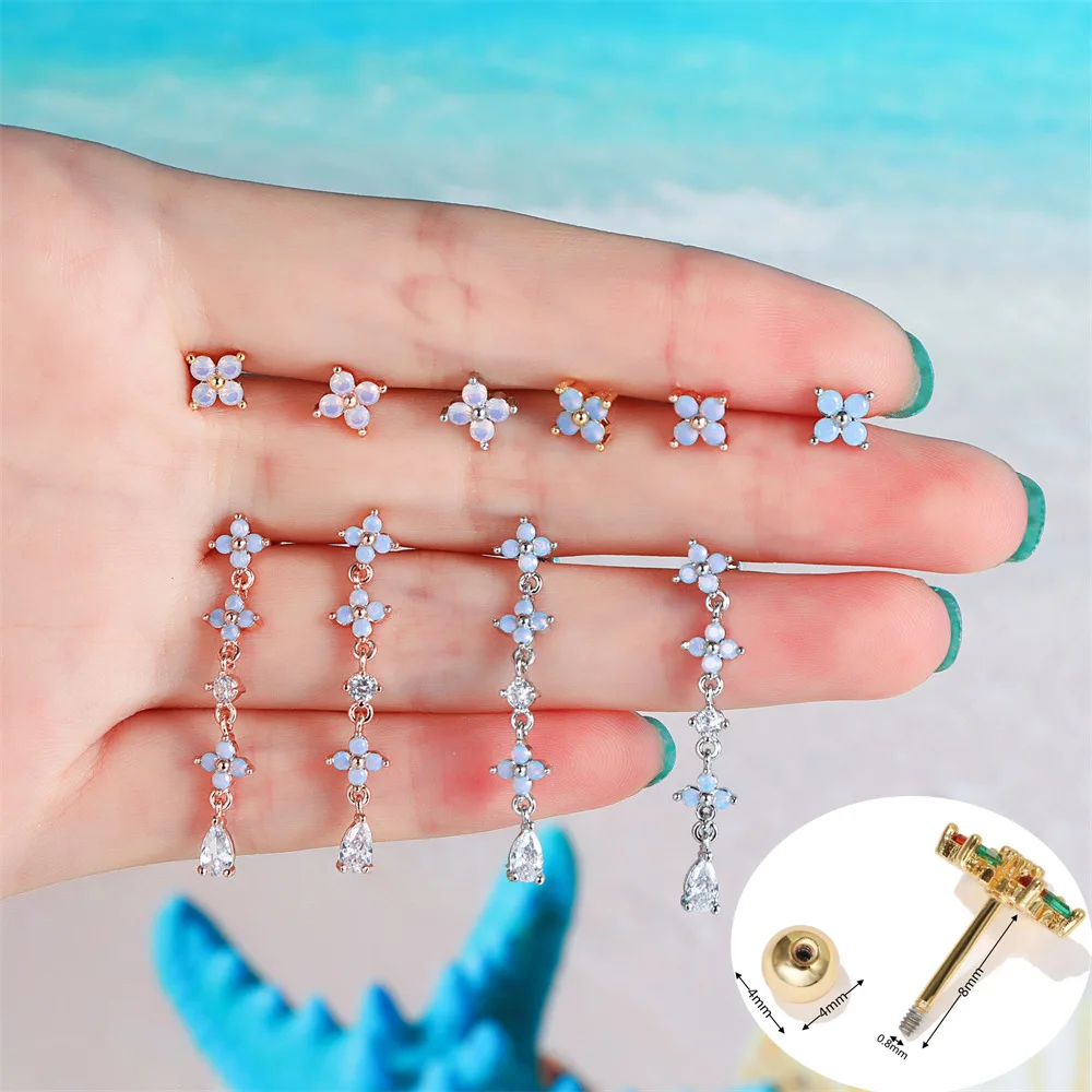 1 шт., модные маленькие серьги-кольца из нержавеющей стали с голубым цветком, крошечные циркониевые серьги-гвоздики для женщин, ювелирные изделия для пирсингаПосылка включает в себя: 1 шт. серьги, а не пару