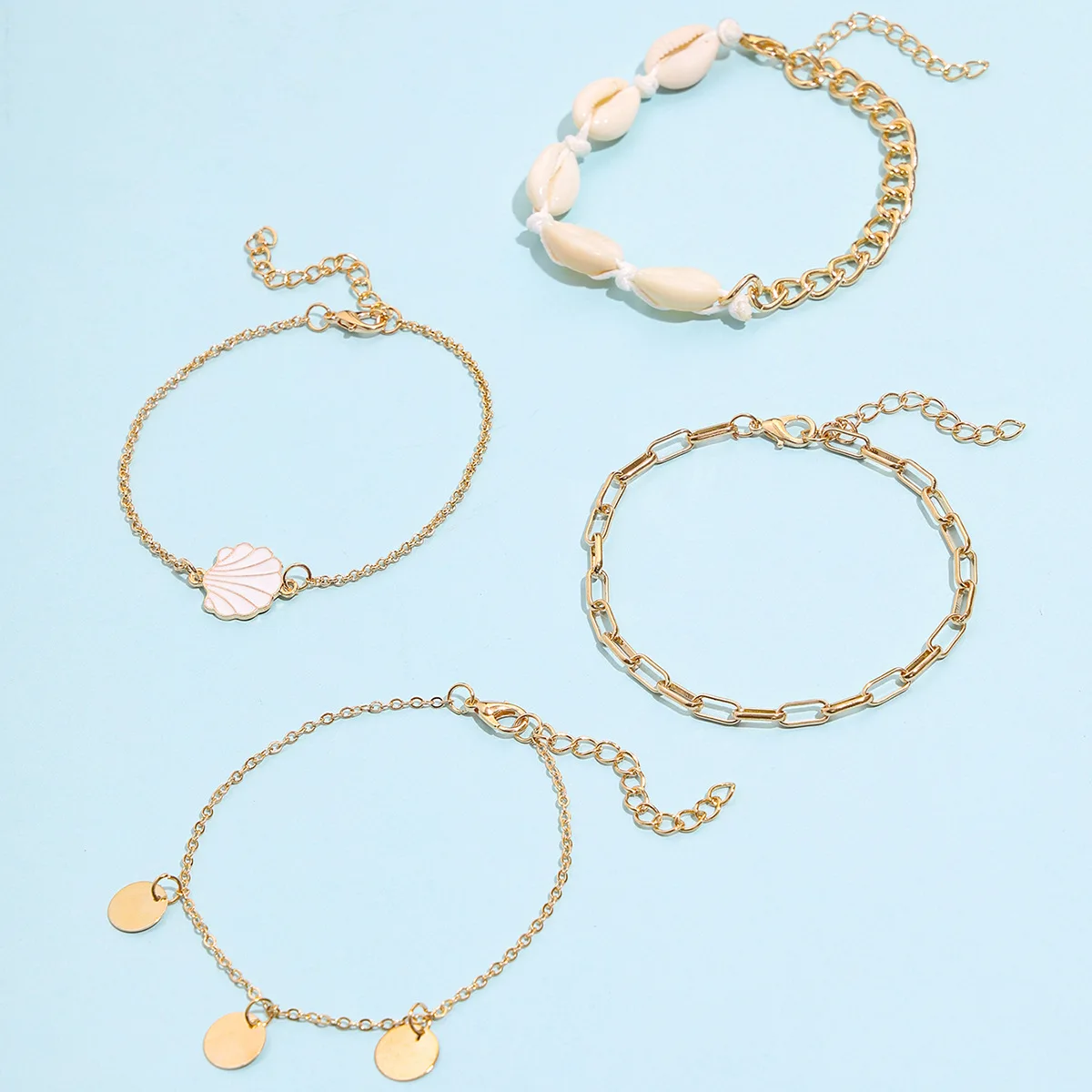 Летние пляжные богемные винтажные браслеты с цепочкой и кисточками для монет, Женские многослойные ножные браслеты белого цвета в виде ракушек для женщин, ювелирные изделия S788