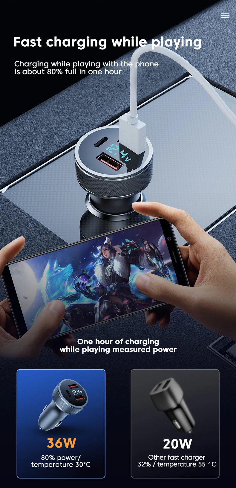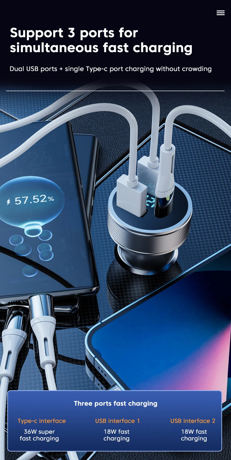 Отзывы о Автомобильное зарядное устройство 3 в 1 72 Вт USB C быстрая зарядка QC3.0 PD Type