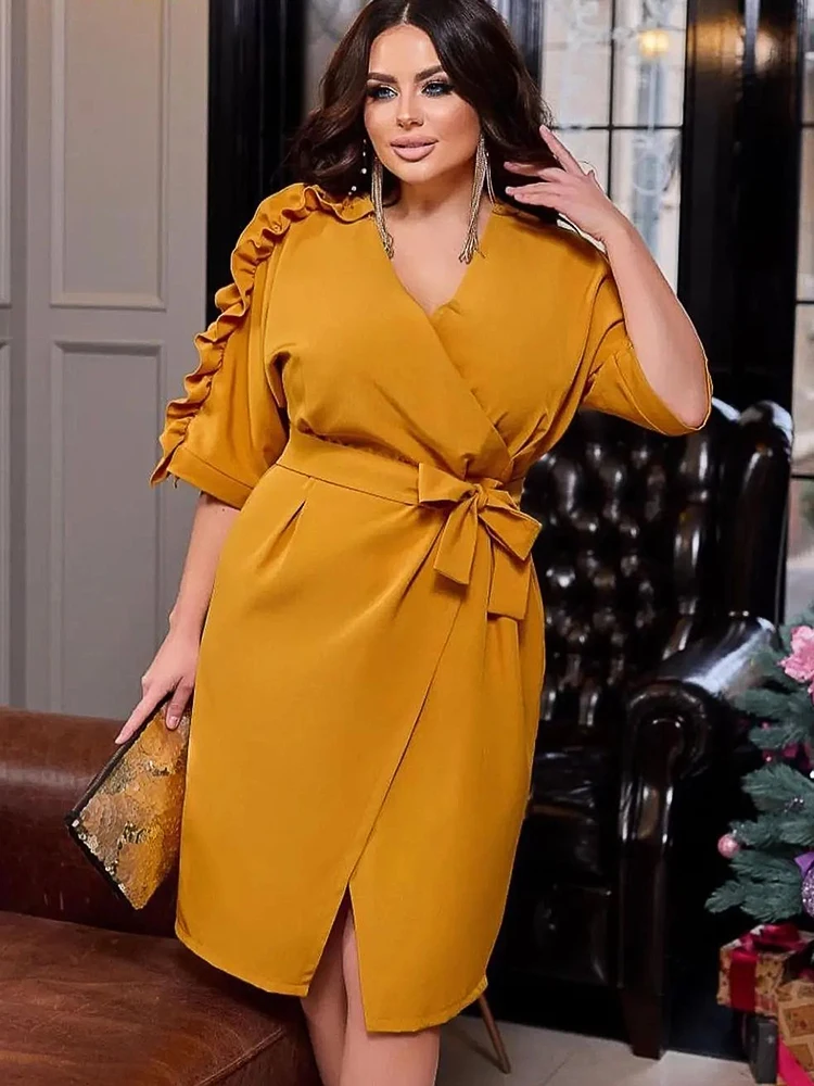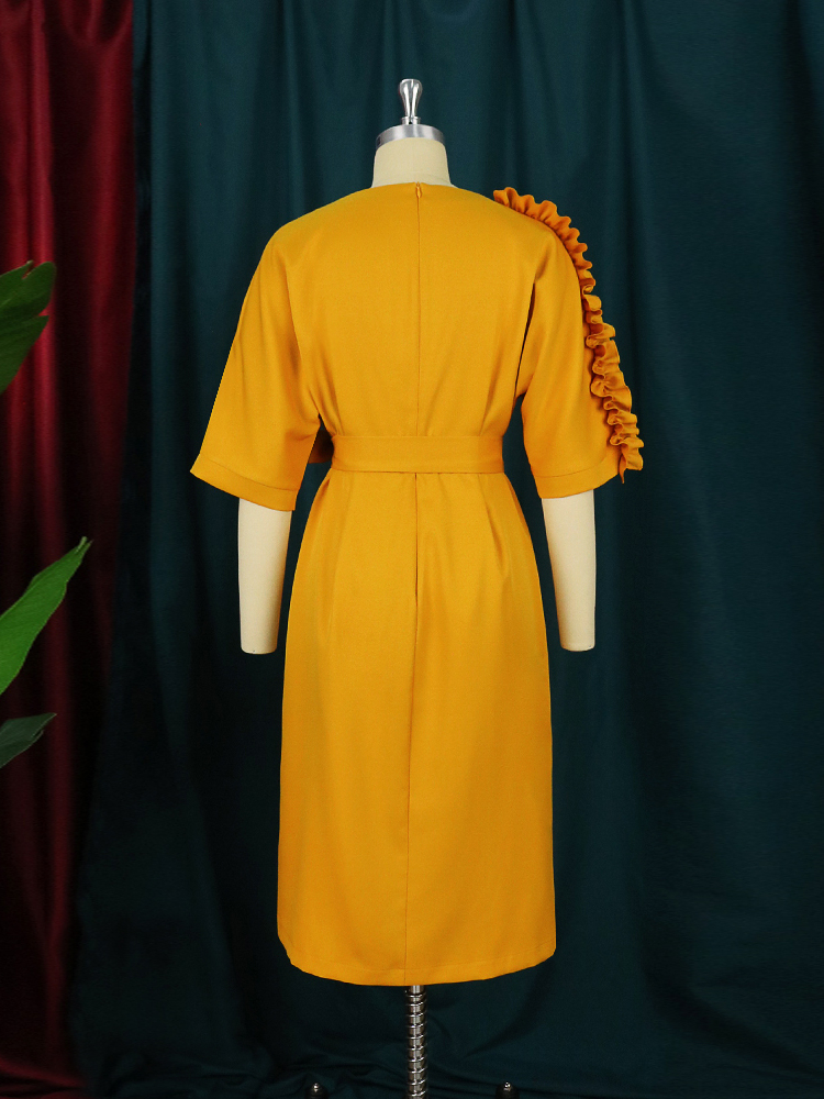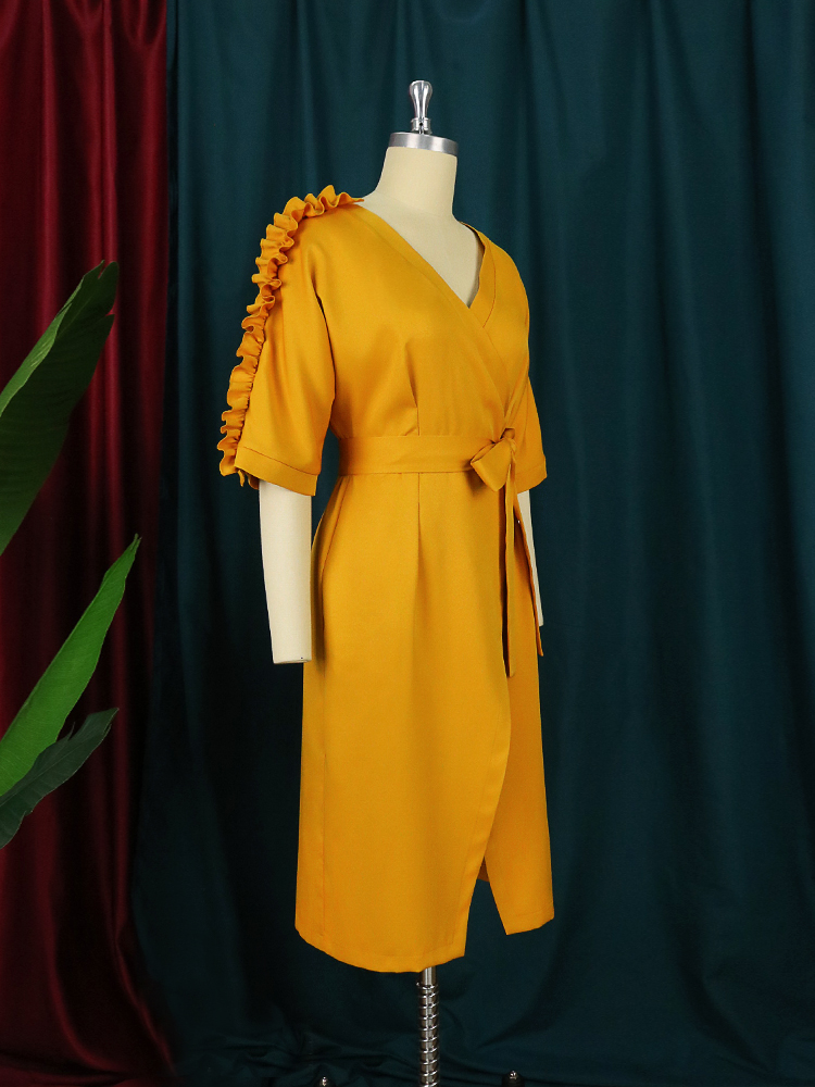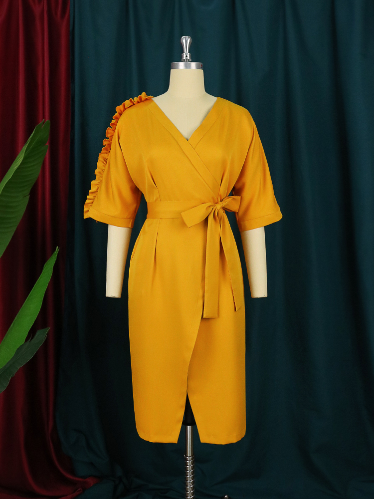 Отзывы о Платье женское средней длины с V-образным вырезом и коротким рукавом - купить по