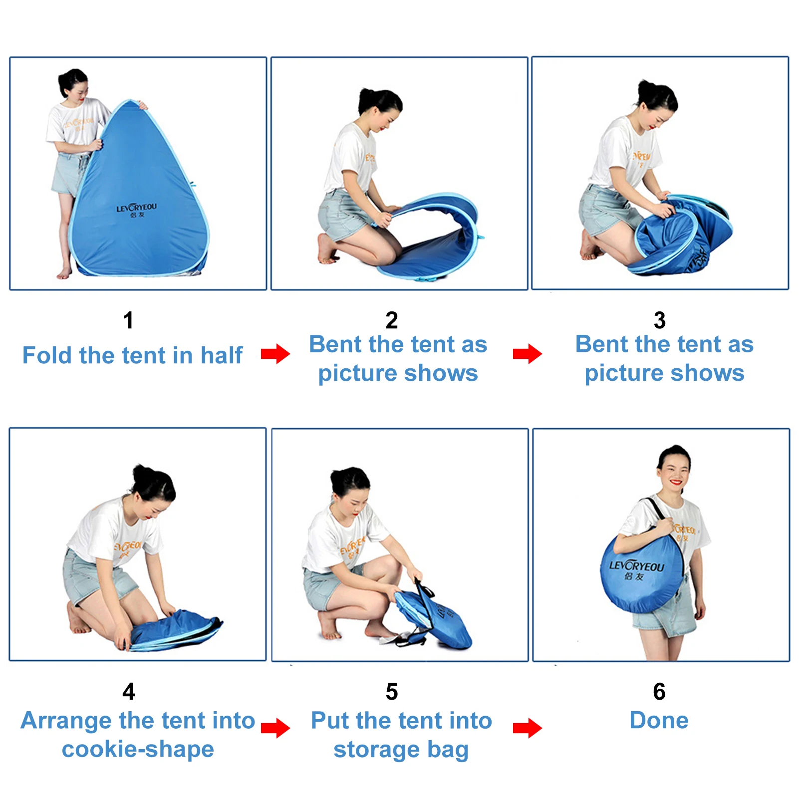 Всплывающий дизайн, легко открыть, закрыть, хранить и переносить. Он может вместить 3-4 человек комфортно. Сетчатое окно вентилируется, а специальное покрытие делает палатку УФ-защитой и water-resistant.Perfect для пляжа, пикника, парка или на заднем дворе.