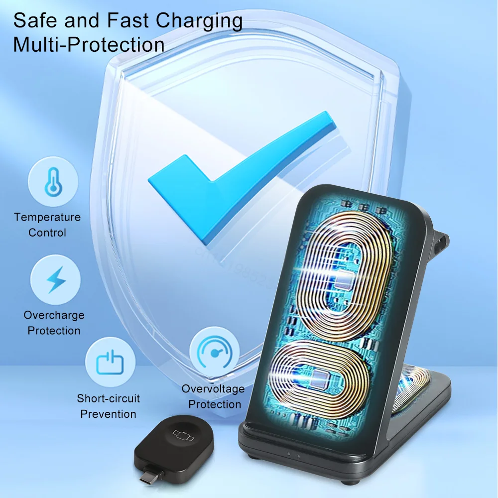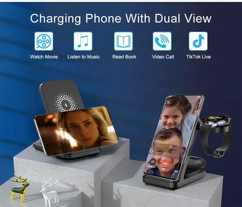 【Humanized дизайн и Зарядка телефона с двойным видовым экраном 】С двойной зарядной конструкцией катушки: 2022 Новая беспроводная зарядная станция 3 в 1 может обеспечить более стабильную зарядку без прерывистой зарядки или перегрева, вызванного несоответствиями. Улучшенная скорость зарядки, устраняет трудности с поиском «лучшего местоположения».