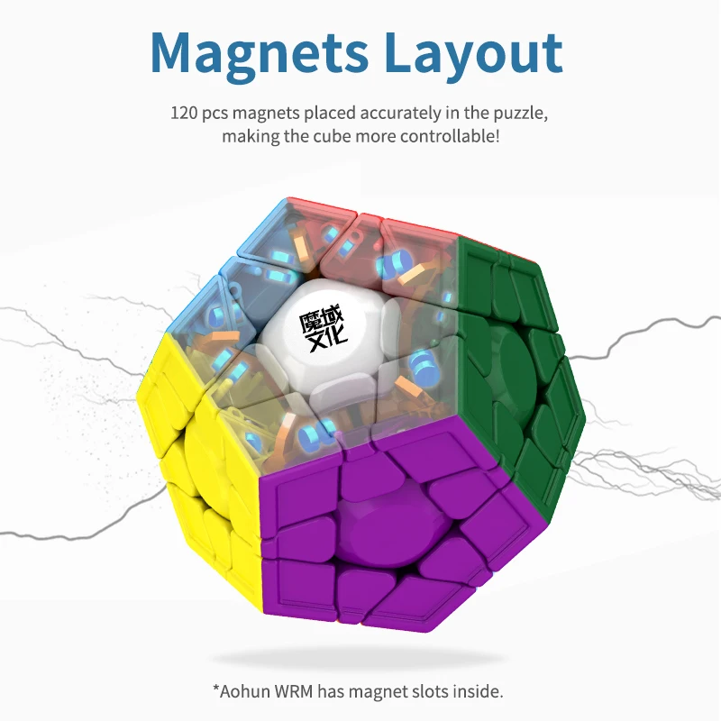 AoHun WR M от MoYu является их новым флагманом и первым магнитным megaminx. Яркие яркие оттенки и магниты на светильник. С 30,5 мм Длина края, он находится в меньшую сторону.