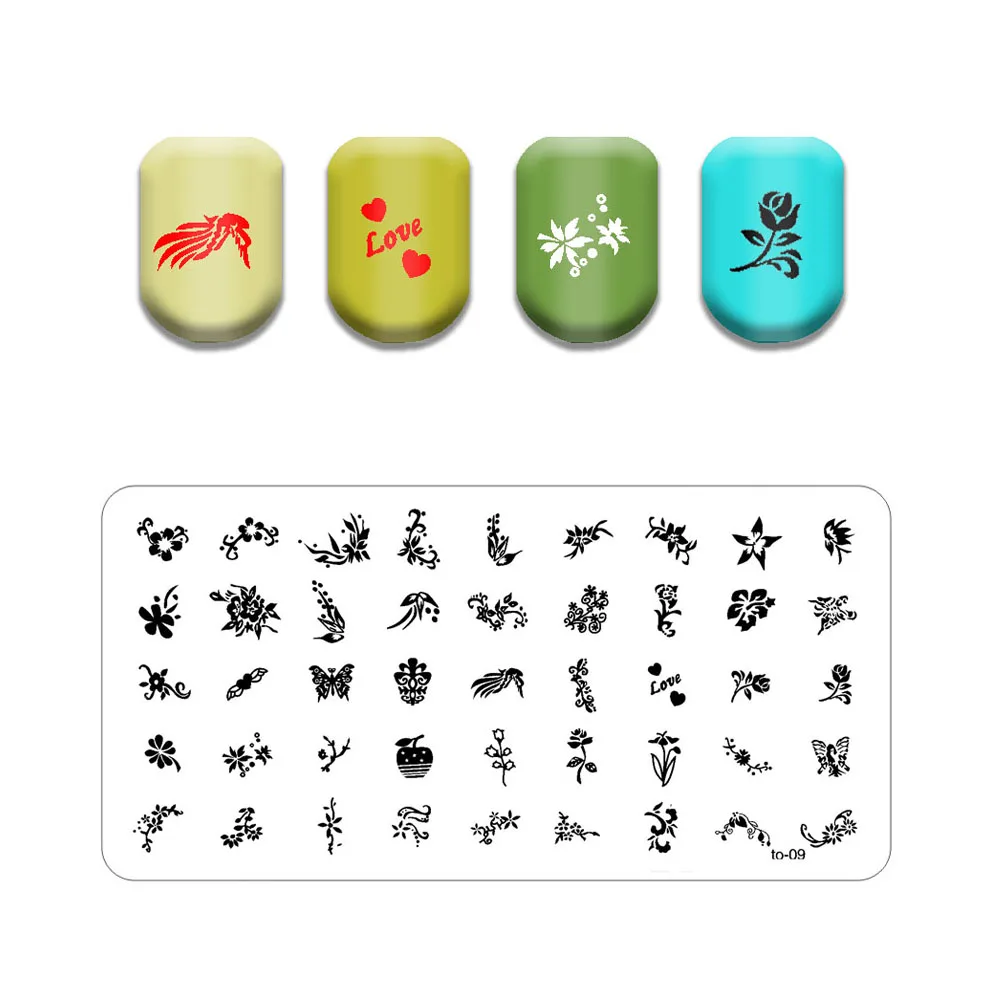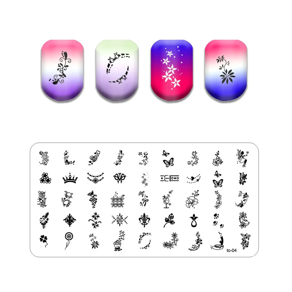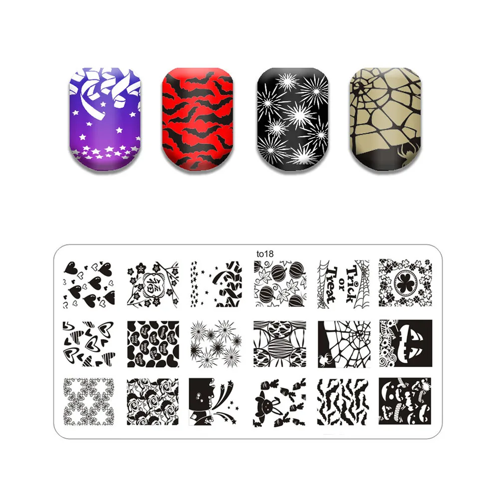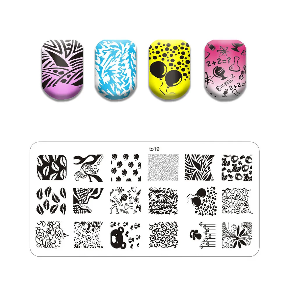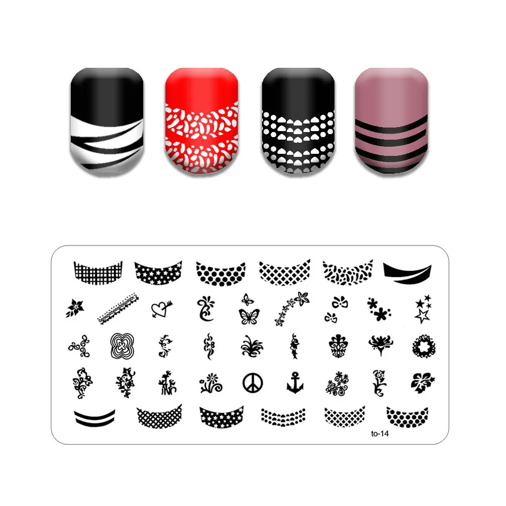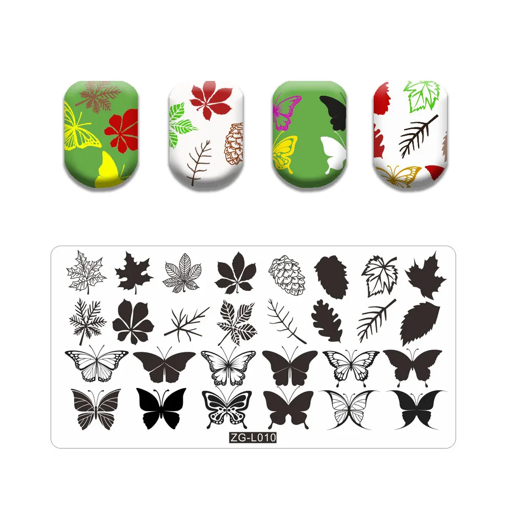 Новая линия лист ногтей штампованные пластины Милая бабочка кошка штамповочная пластина череп цветок дизайн ногтей шаблон паук веб-изображение камня пластина
