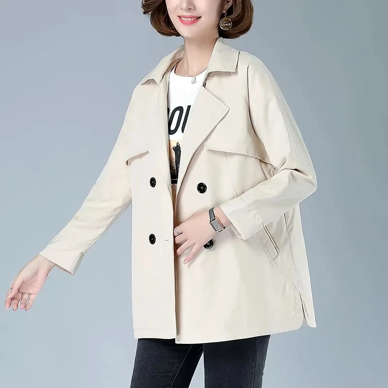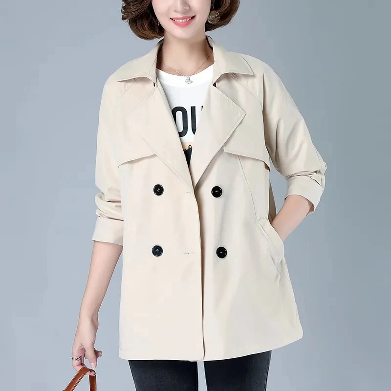Модная короткая ветровка, Женская весенне-осенняя куртка, новинка 2022, свободный большой размер 5XL, Женский Тренч, пальто среднего возраста, верхняя одежда