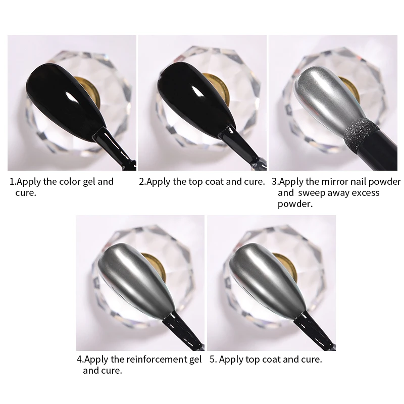 4. Установите зеркало порошок для ногтей и чистые излишки пудры.