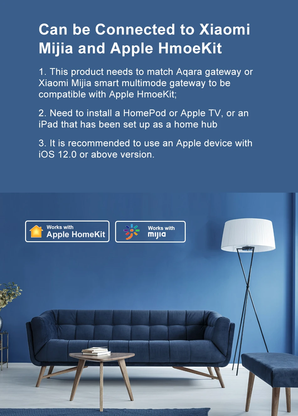 3. Этот продукт должен соответствовать Aqara gateway или Xiaomi Mijia smart multimode gateway, чтобы быть совместимым с Apple HmoeKit;